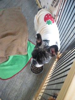 ヨーキーバディー君、晩御飯は完食してました。朝ご飯は口を付けません。