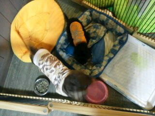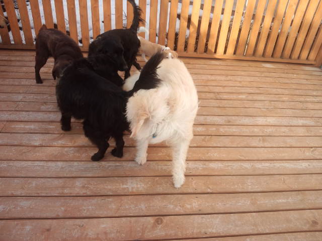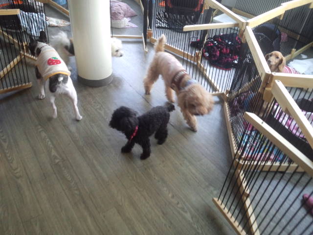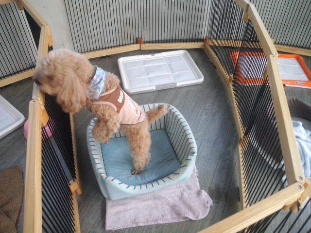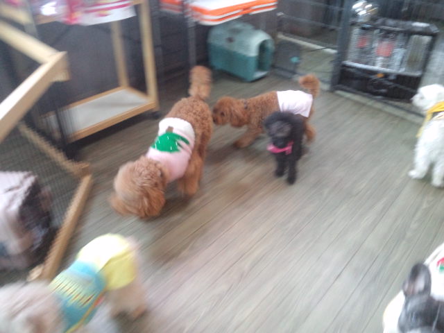 すぐにサークルから出て、他のワンコ達と遊んでます。