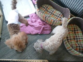 生涯預かりマルチーズキュー君とトイプーベラちゃん、しっかり完食しました。 トイプーパピー虎治朗君ととハナちゃん、しっかり完食しました。