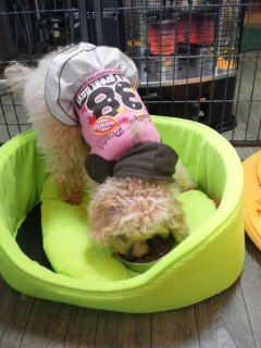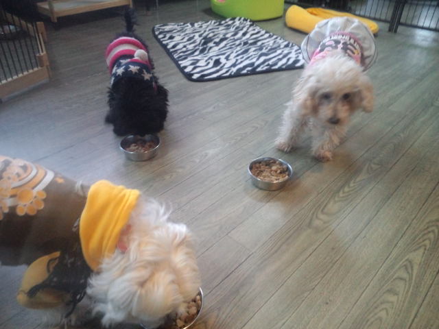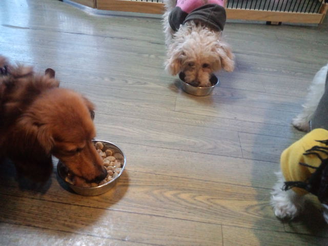 生涯預かりマルチーズキュー君とパピー虎治朗君、しっかり完食しました。トイプーベラちゃん、半分食べました。