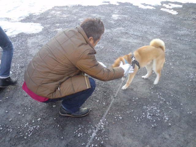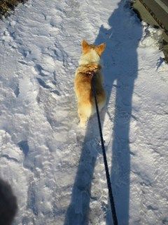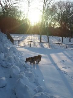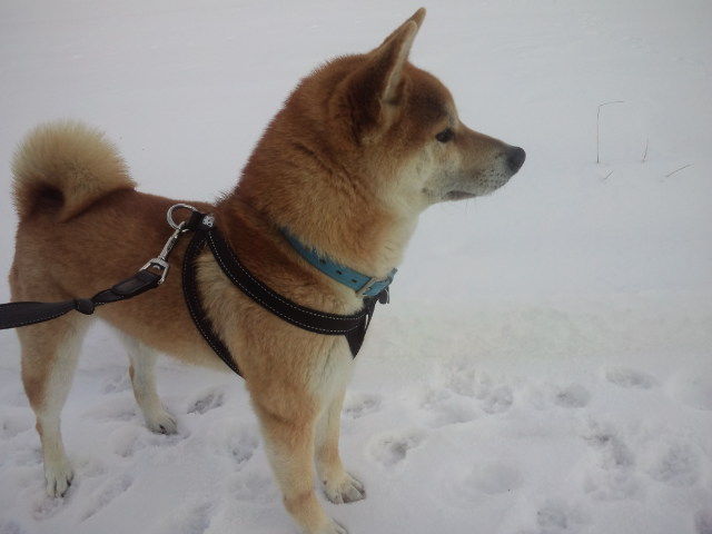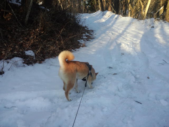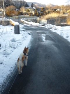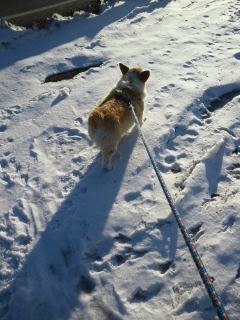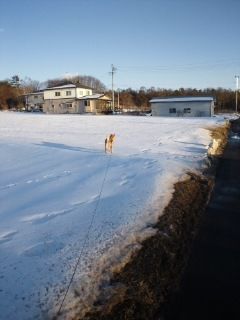 散歩途中でシェルティーに会いました。ご挨拶も出来ず、ハチ君は雪原を走り回って鬱憤晴らししてました。