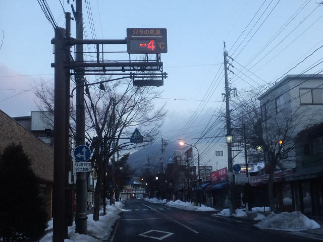 今朝の軽井沢の気温は-4℃、天気は晴れてます。