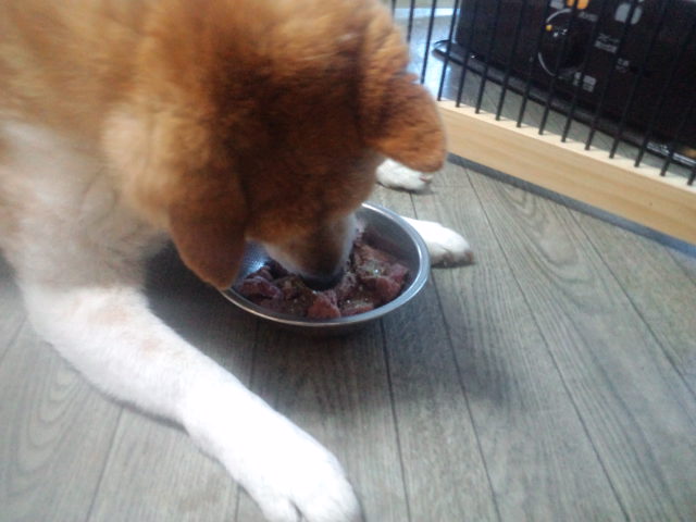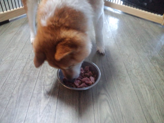 生涯預かり柴タロウ君、少しずつ食べてます。