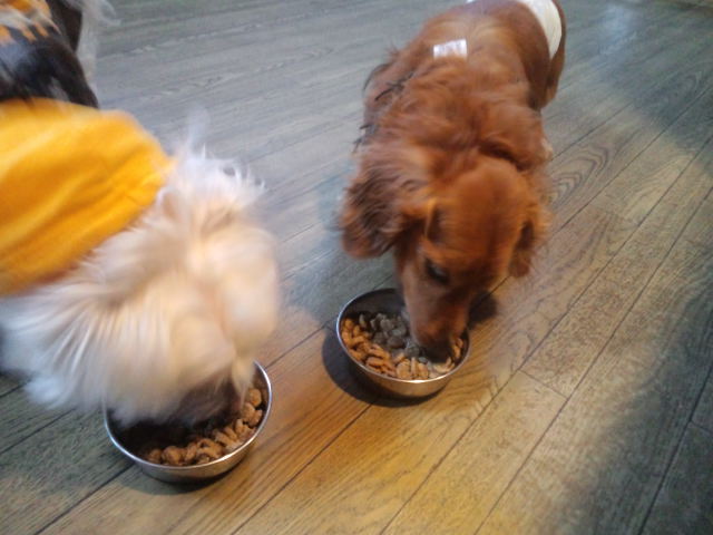 生涯預かりダックスズのラブ君とチャコ君、しっかり完食しました。
