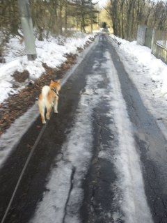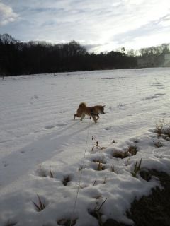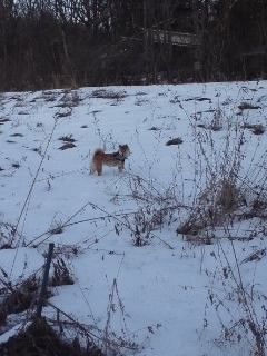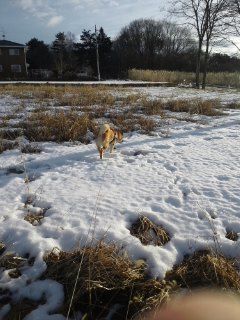 ここ最近の天気でハチくんがいつも遊ぶ畑の雪もかなり溶けてしまいました…。 でも、ハチくんはいつもと変わらず大はしゃぎです。