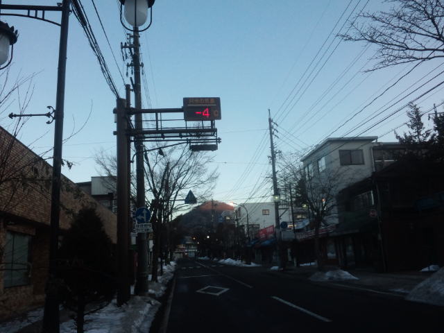 今朝の軽井沢の気温は-4℃、天気は晴れてます。