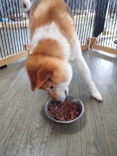 生涯預かり柴タロウ君、少しずつ食べてます。