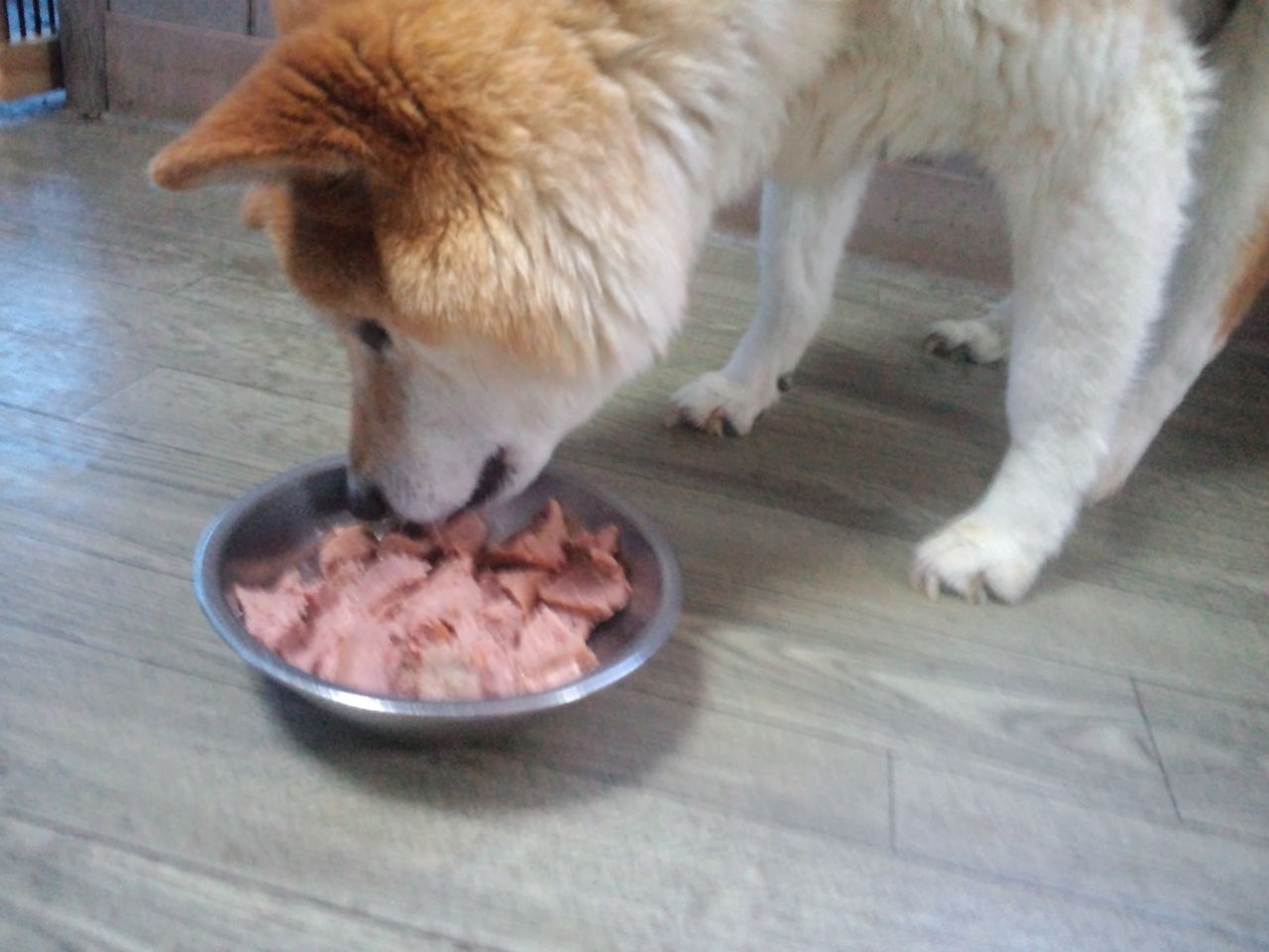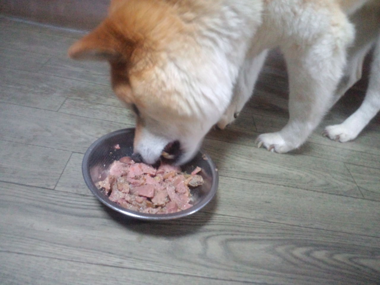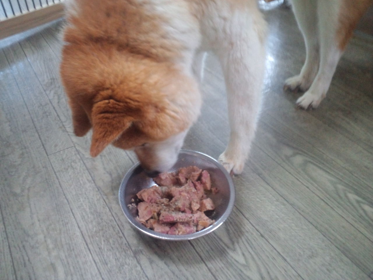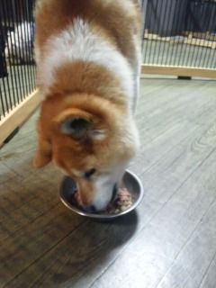 生涯預かり柴タロウ君、少しずつ食べてます。