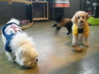 生涯預かりマルチーズキュー君とトイプーベラちゃん、パピー虎治朗君、しっかり完食しました。