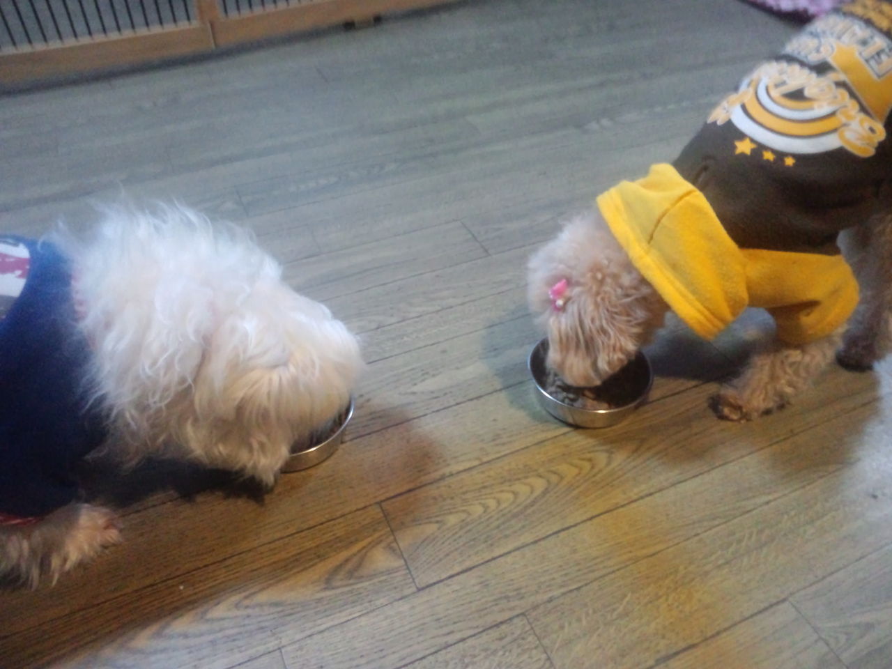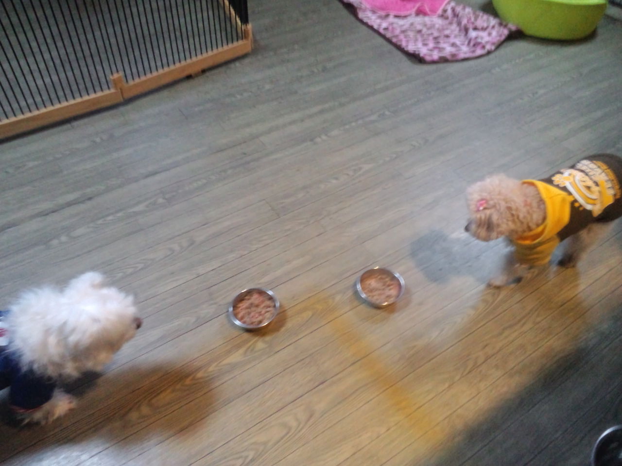 生涯預かりマルチーズキュー君とトイプーベラちゃん、しっかり完食しました。