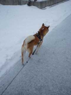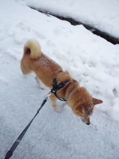今朝は雪がモクモク降っているのでハチくんの頭や体に雪がすぐ積もってしまいます。