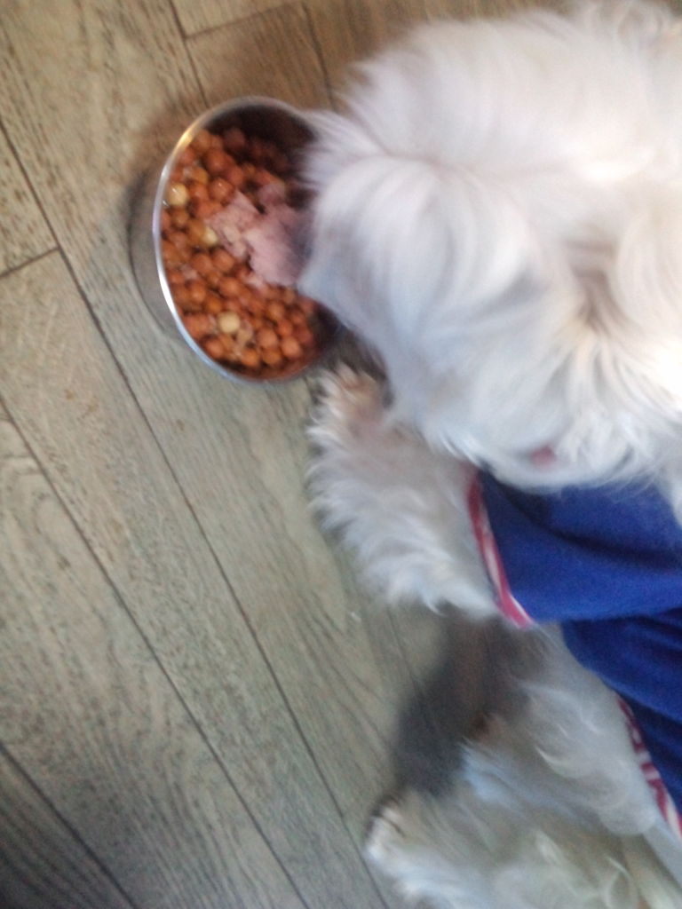 生涯預かりマルチーズキュー君とトイプーベラちゃん、半分食べました。