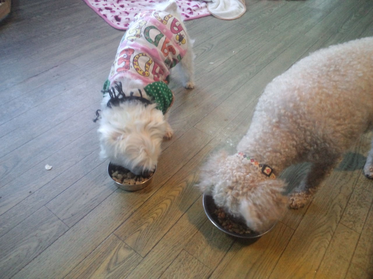 生涯預かりマルチーズキュー君とトイプーベラちゃん、しっかり完食しました。