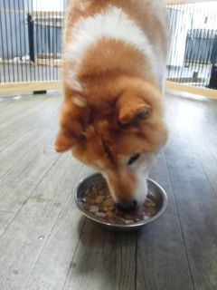 生涯お預かり柴犬タローくんゆっくり食べています。