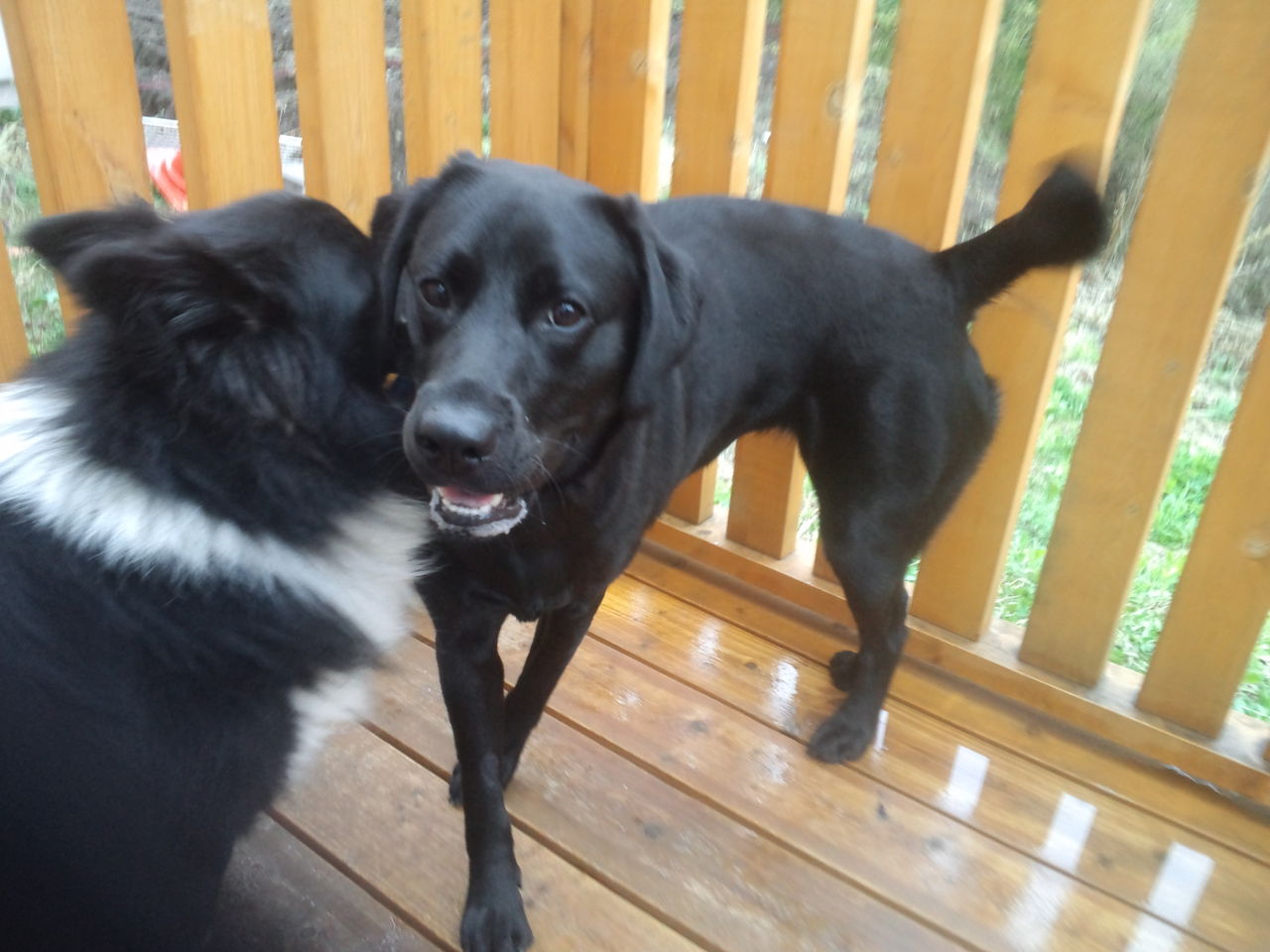 来てすぐに他のワンコ達にご挨拶、ボーダーサエノスケ君とは乗ったり乗られたりでウマが合うみたいです。