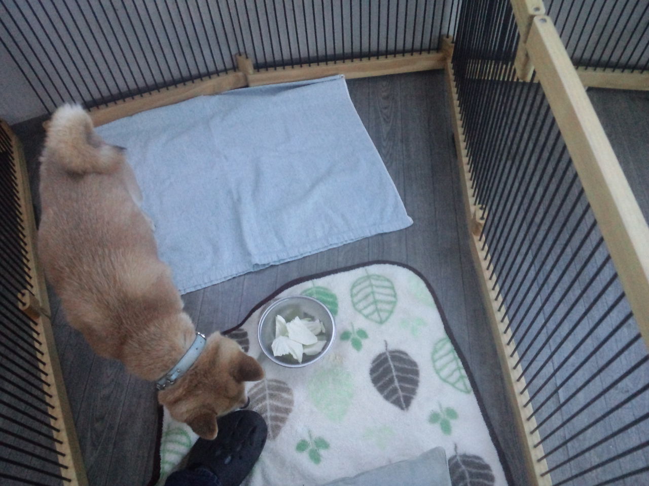 生涯預かり柴タロウ君、少しずつ食べてます。