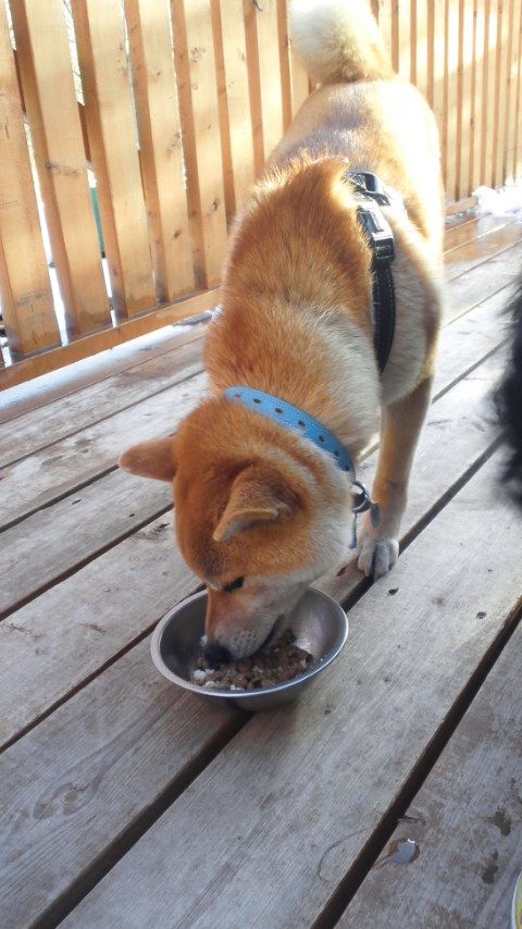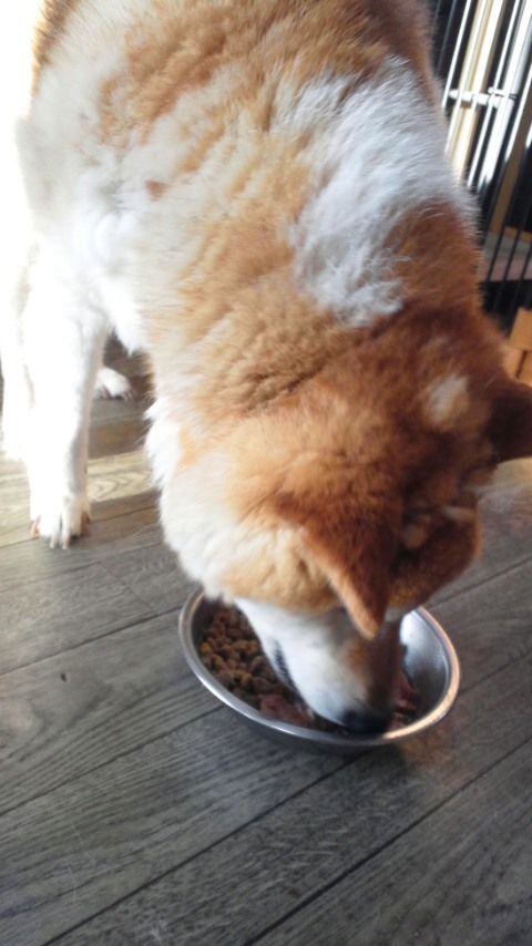 生涯お預かり柴犬タローくんゆっくり食べています。