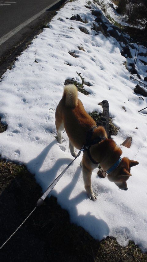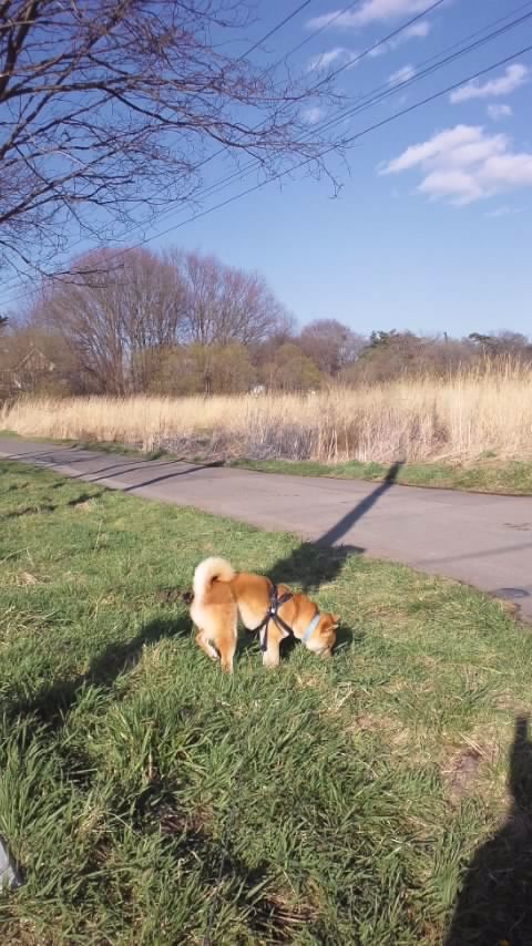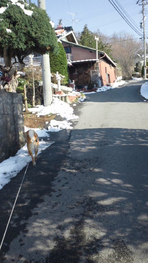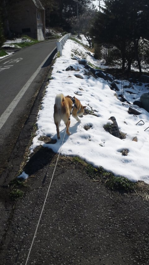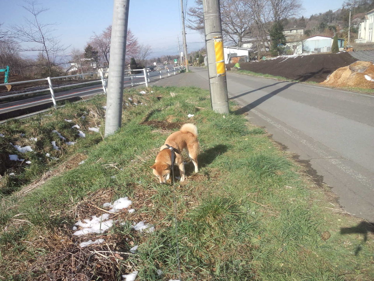 雲の少ない良い天気になりました。雪もすっかり溶けてしまってハチくんはちょっと残念?