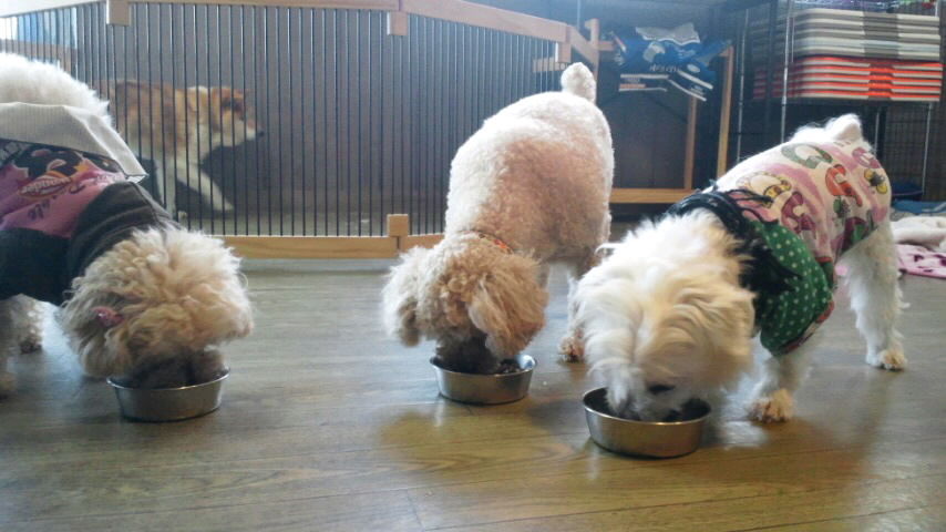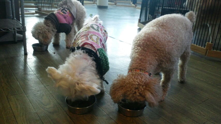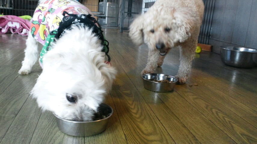 長期お預かりトイプーテディくんしっかり完食しました。目薬も差しました。 生涯お預かりマルチーズキューくん、トイプーベラちゃんしっかり完食しました。