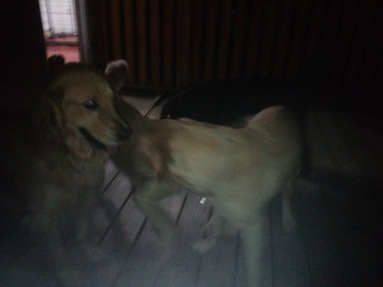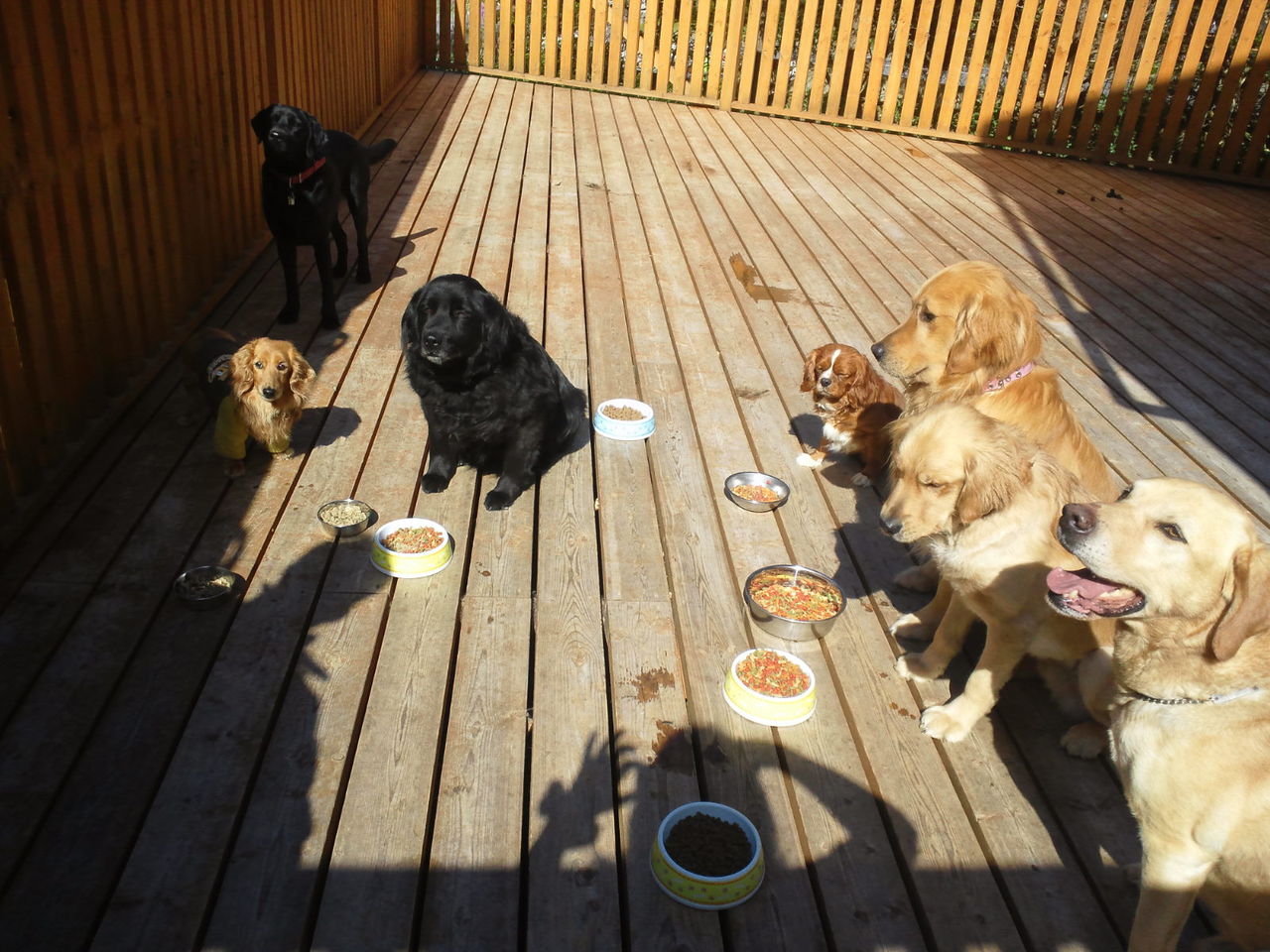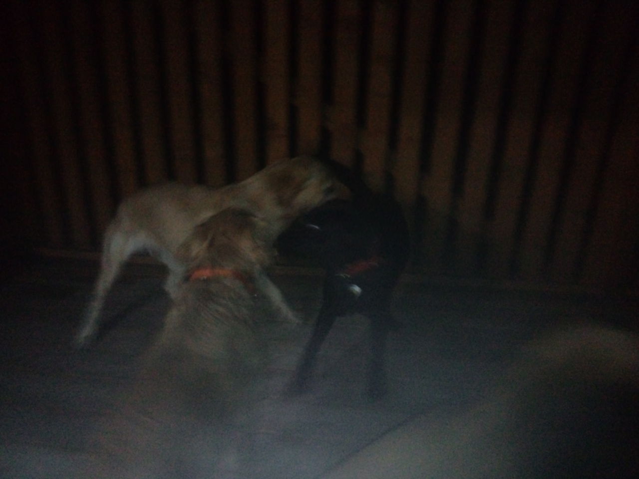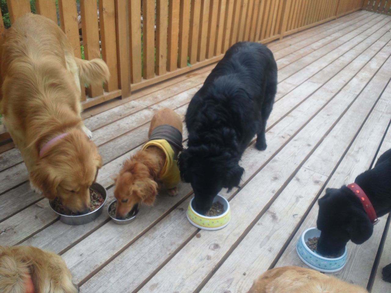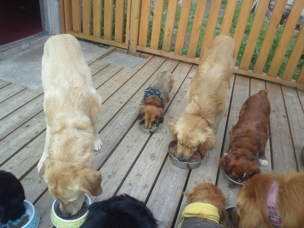 初めはサークルで分けて様子を見ようと思ったのですが、すぐにみんなと遊びたがり、夜だと言うのにデッキで運動会になってます。
