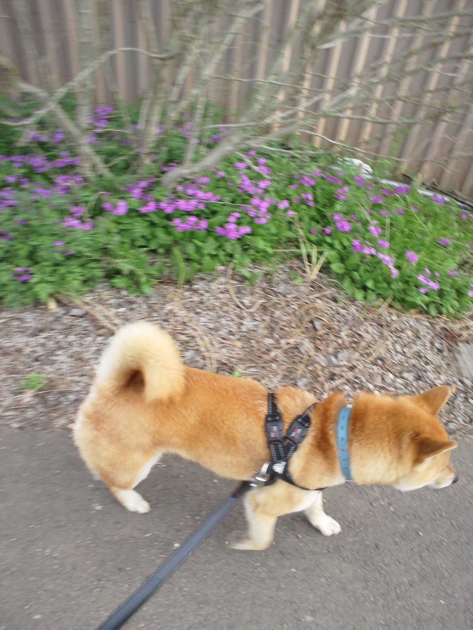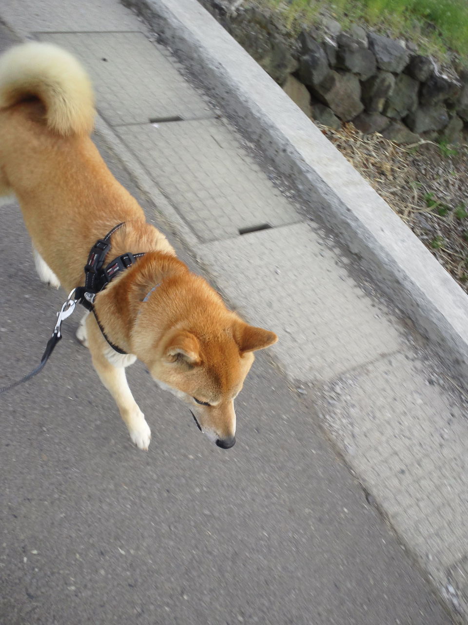 天気が下り坂のため、風が少し強めです…。 でも、このくらい風があるとお散歩がし易いなぁ~と言いたそうなハチくんです!