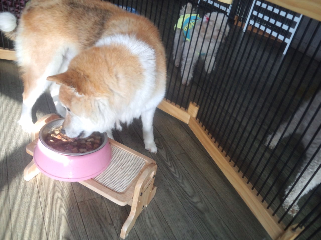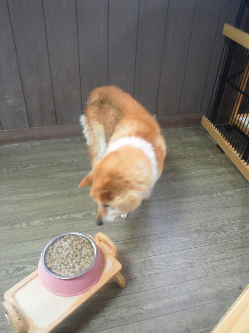 生涯お預かり柴犬タローくんゆっくり食べています。