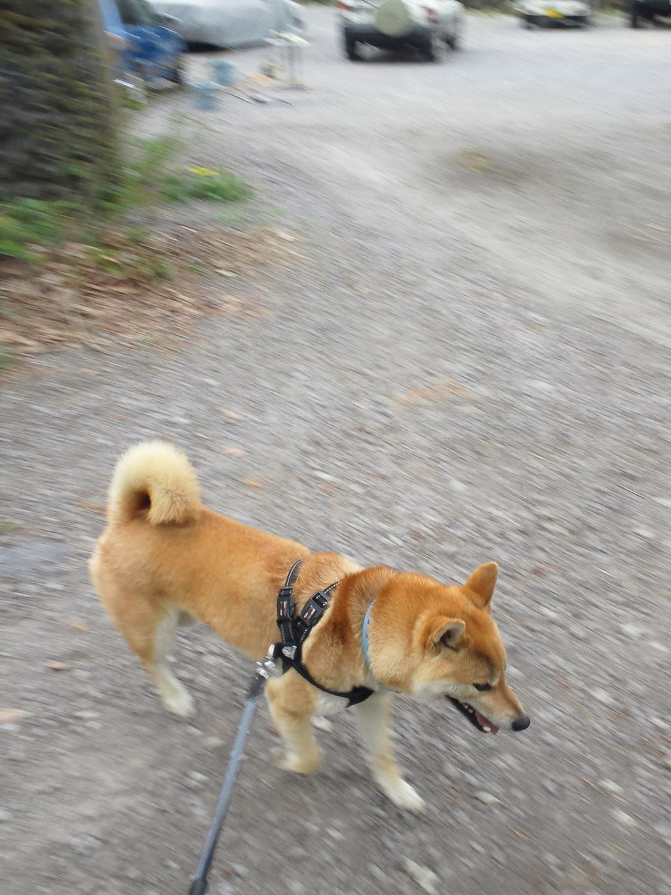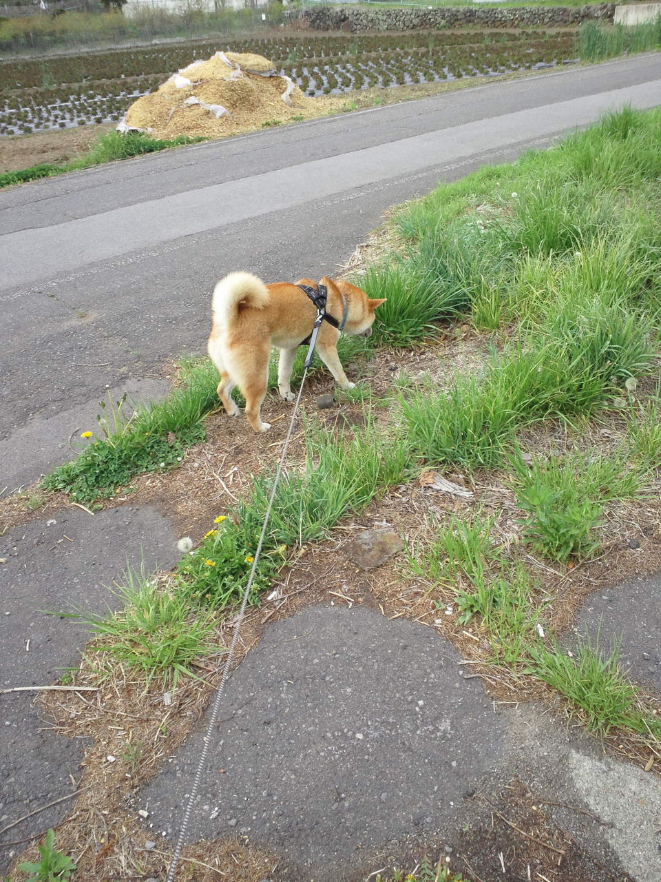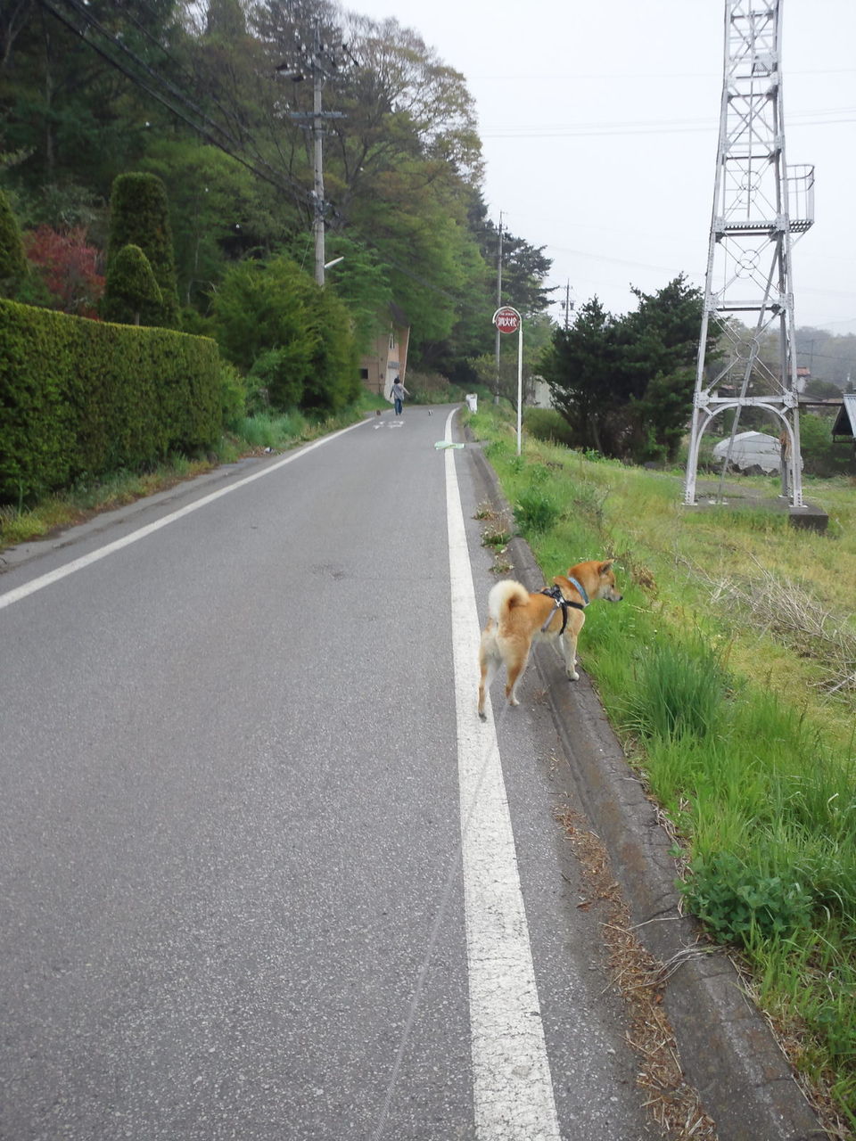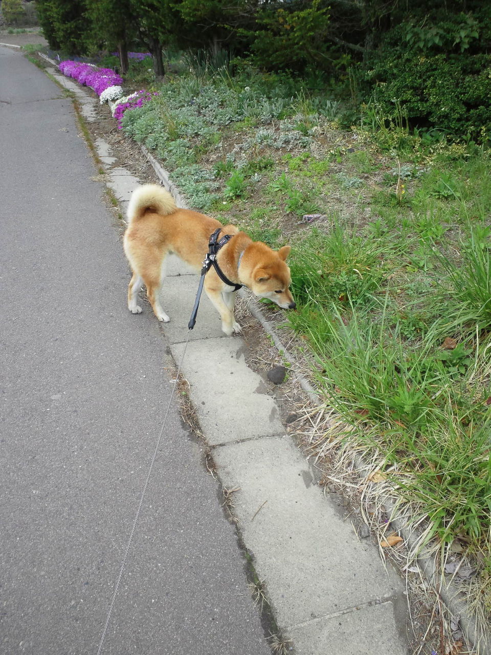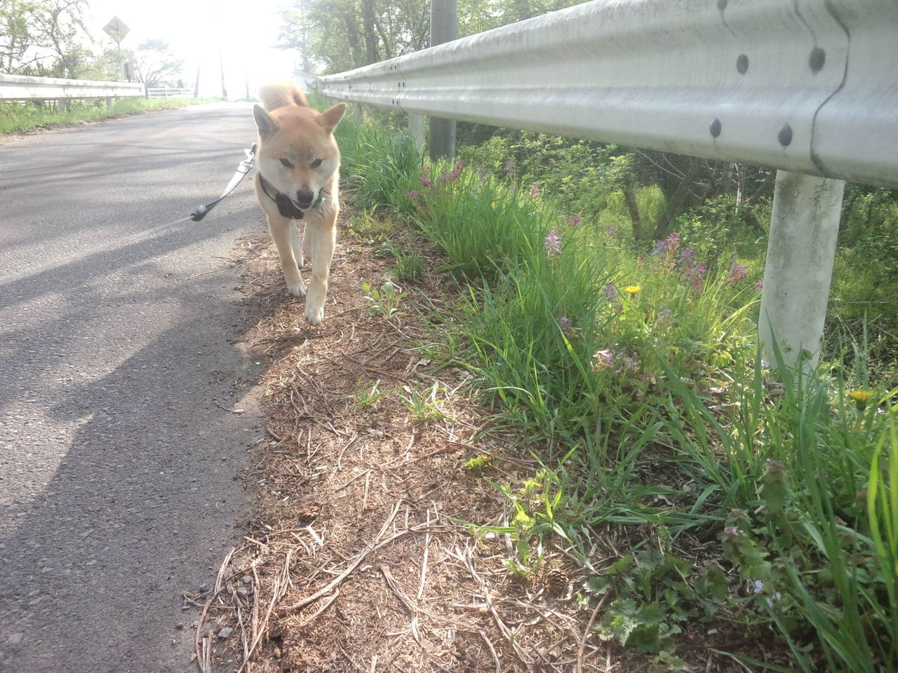 小型犬3匹を散歩させてる人に会いましたが、無反応なハチくん。好みじゃなかったかな?