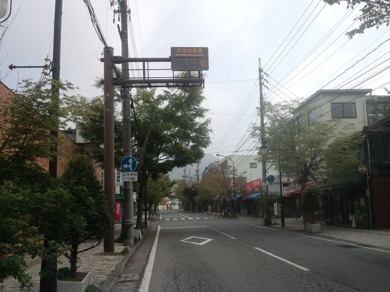 今朝の軽井沢の気温は12℃、天気は曇り空です。