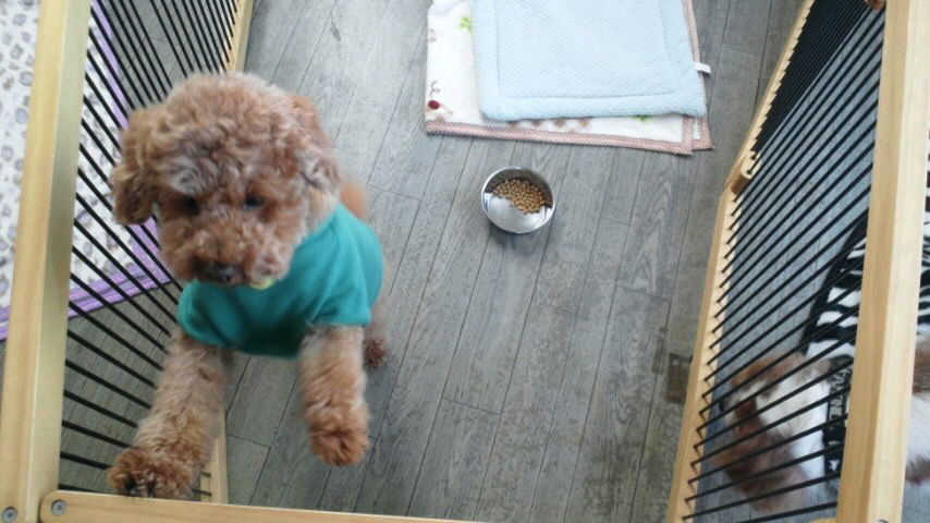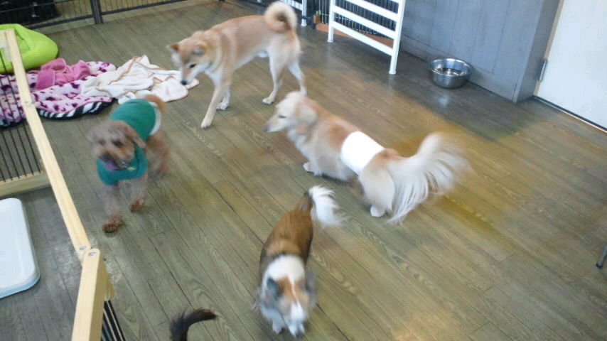 サークルから出せ出せでしたのでサークルから出したら、すぐに他のワンコ達とも大丈夫みたいです。