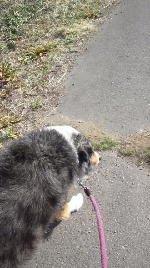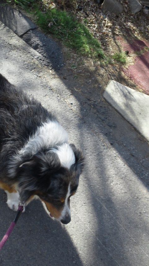 お散歩に行こうと外に出たら太陽が顔を出していました。さっきハチくんのお散歩までは曇り空だったのに、マーブルくんは晴れ男!!? しっかりウンチもしました。