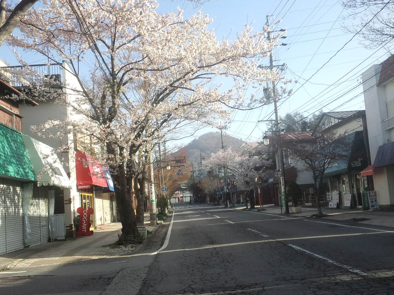 今朝の軽井沢の気温は3℃、天気は五月晴れです。 旧軽井沢の染井吉野も満開になりました。青空をバックに綺麗に映えてます。