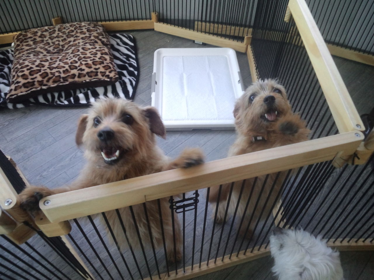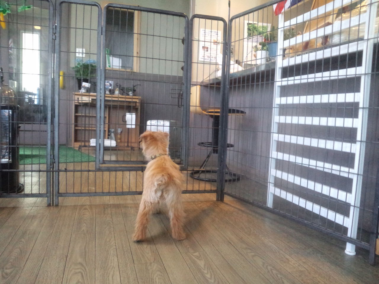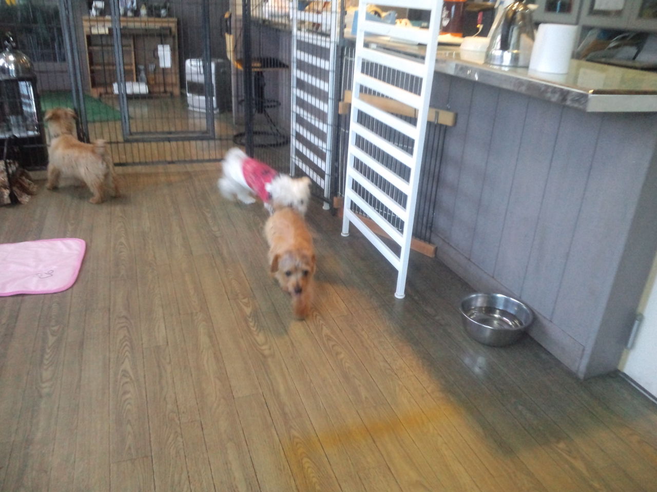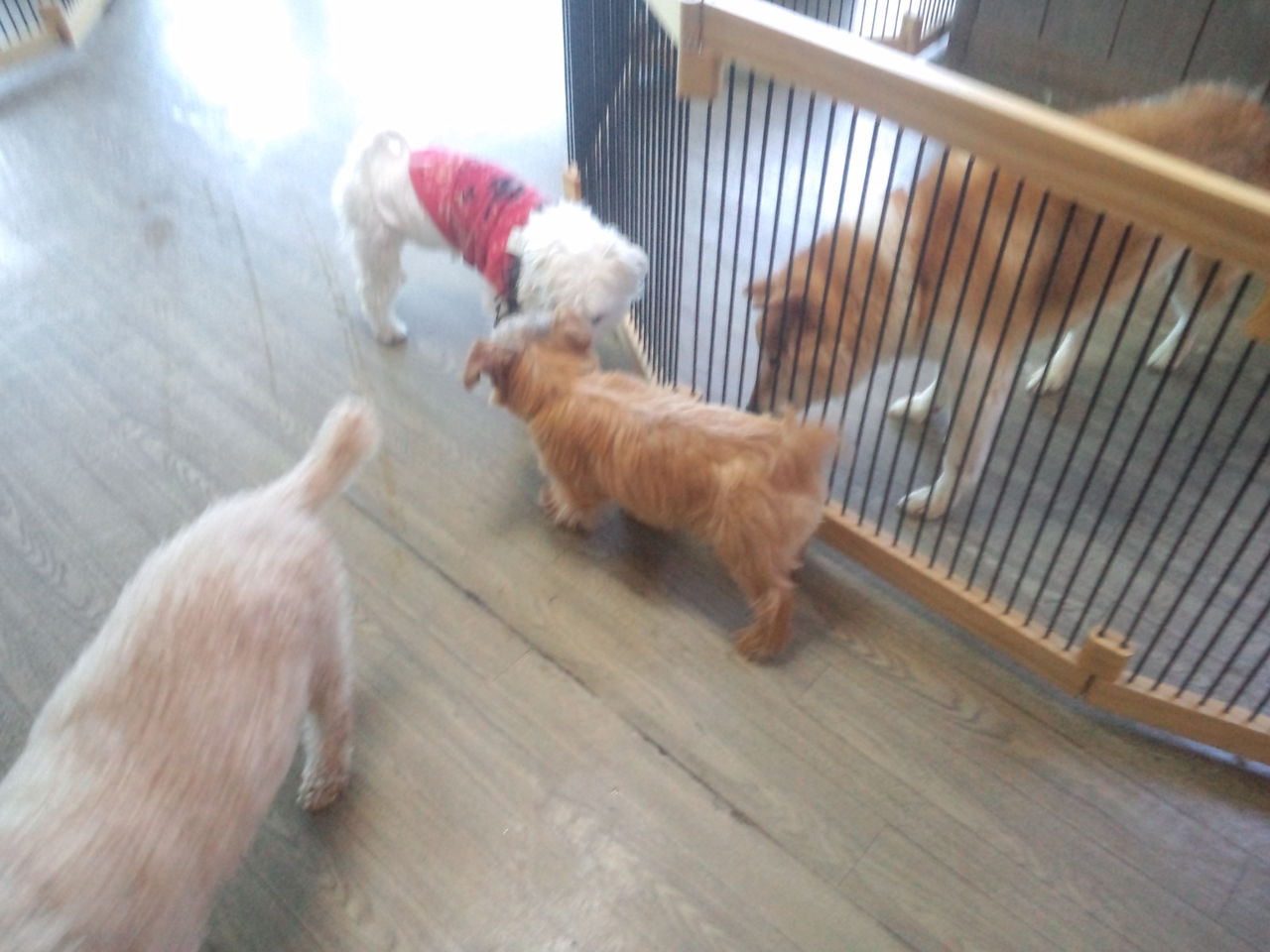 常連ノーフォークテリアのニコちゃんとコトリちゃんがチェックインしました。 いつまでも玄関を見て、飼い主さんを探すニコちゃん。一方コトリちゃんは、マイペースで他のワンコ達の匂いを嗅いでます。