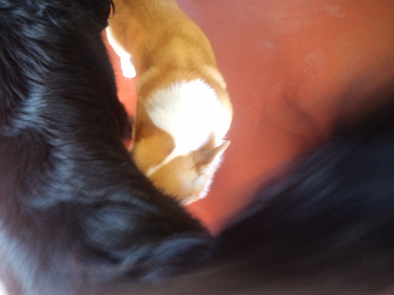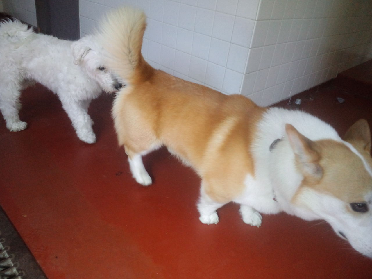 みんなに匂いを嗅がせてご挨拶できてます。ミックスミルク君がしつこくするので少し嫌かな? ワンコより店長に甘えてくれてます。