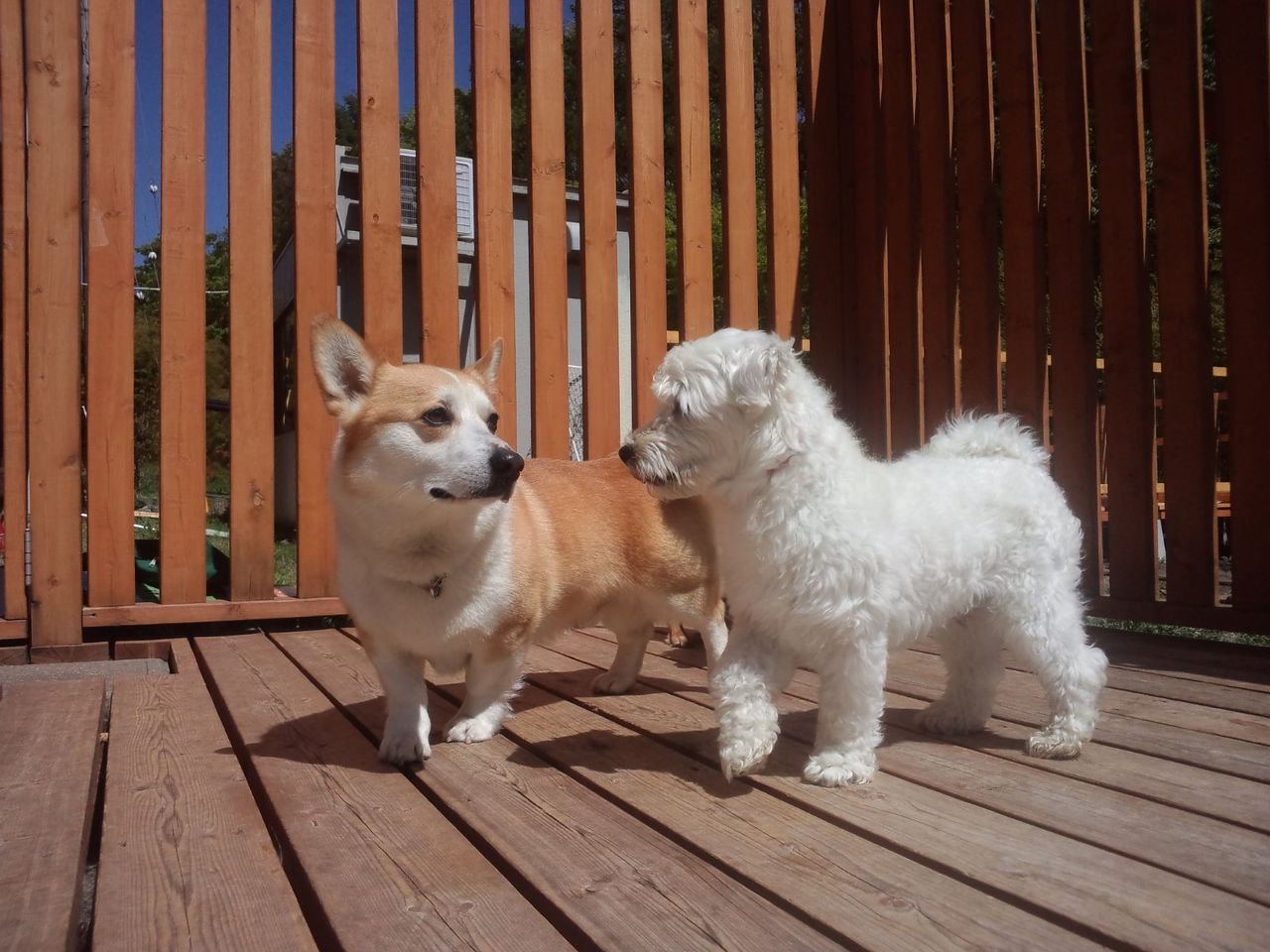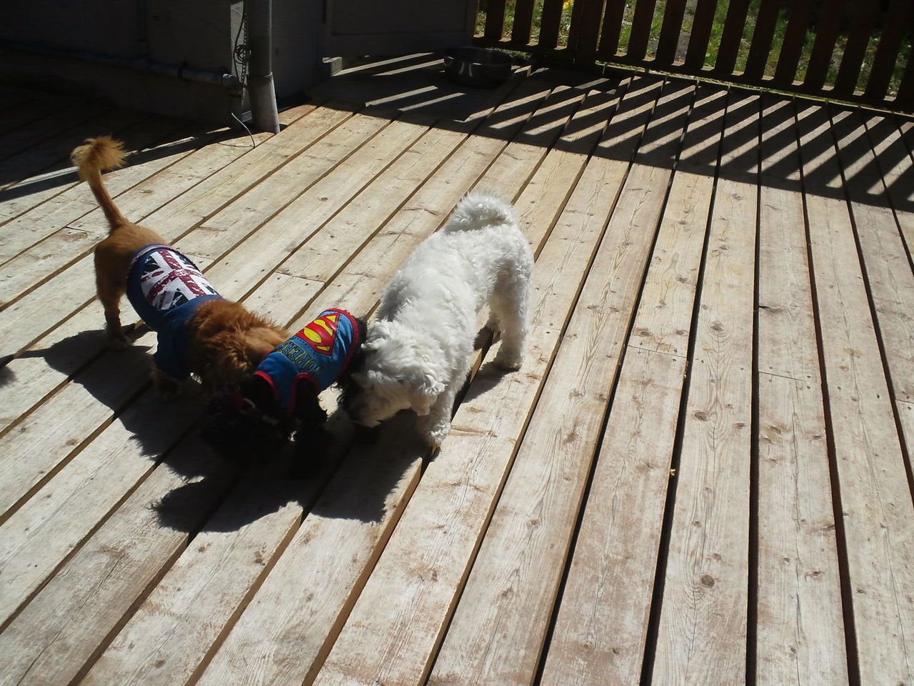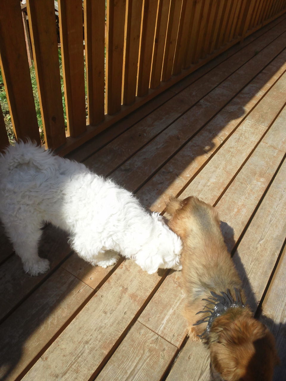 暖かいので小型犬も外に出ています。 犬大好きなミルクくんはみんなと挨拶したり、虎治郎と追いかけっこしています。
