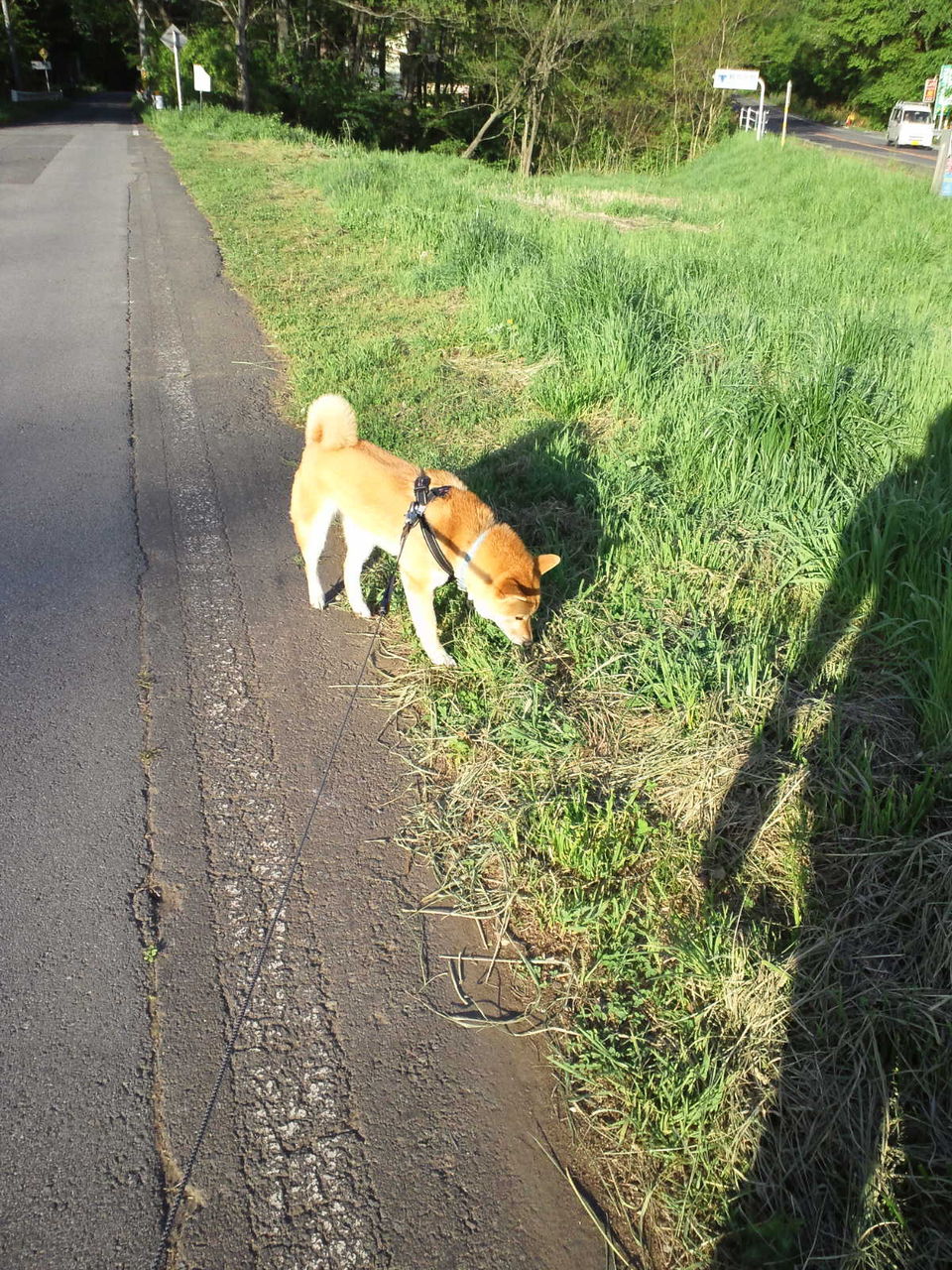 5時過ぎにお散歩に出発したのですが、まだ暑いです…。 こんな日は木陰のコースを行きましょう♪