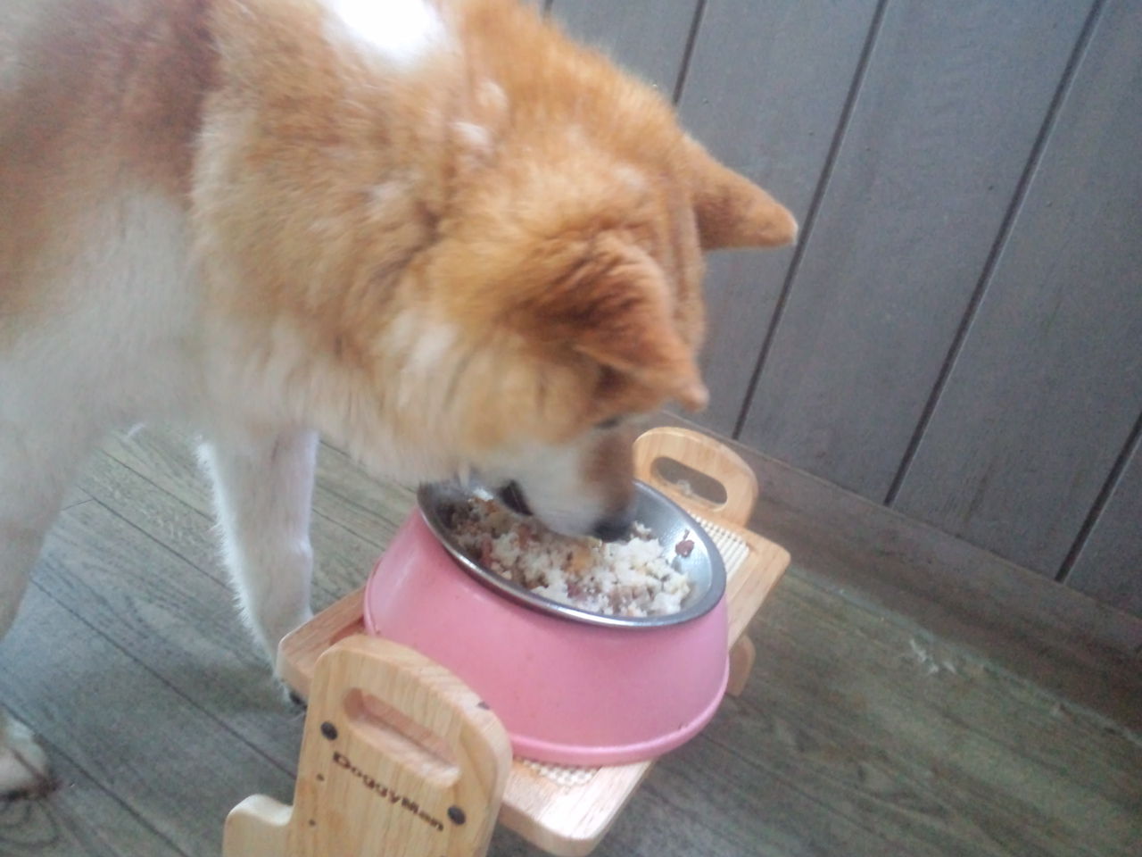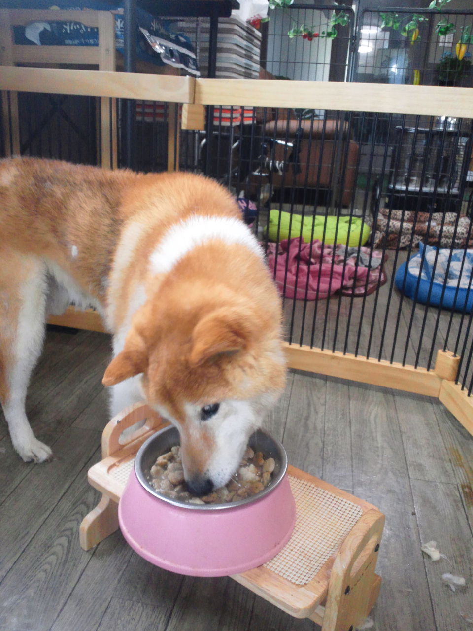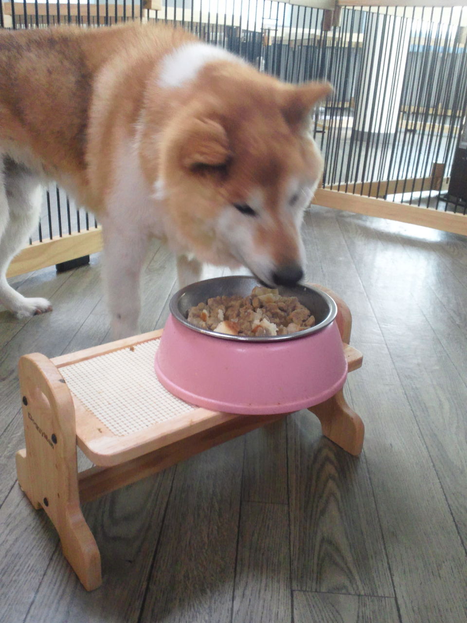 生涯お預かり柴犬タローくんゆっくり食べています。