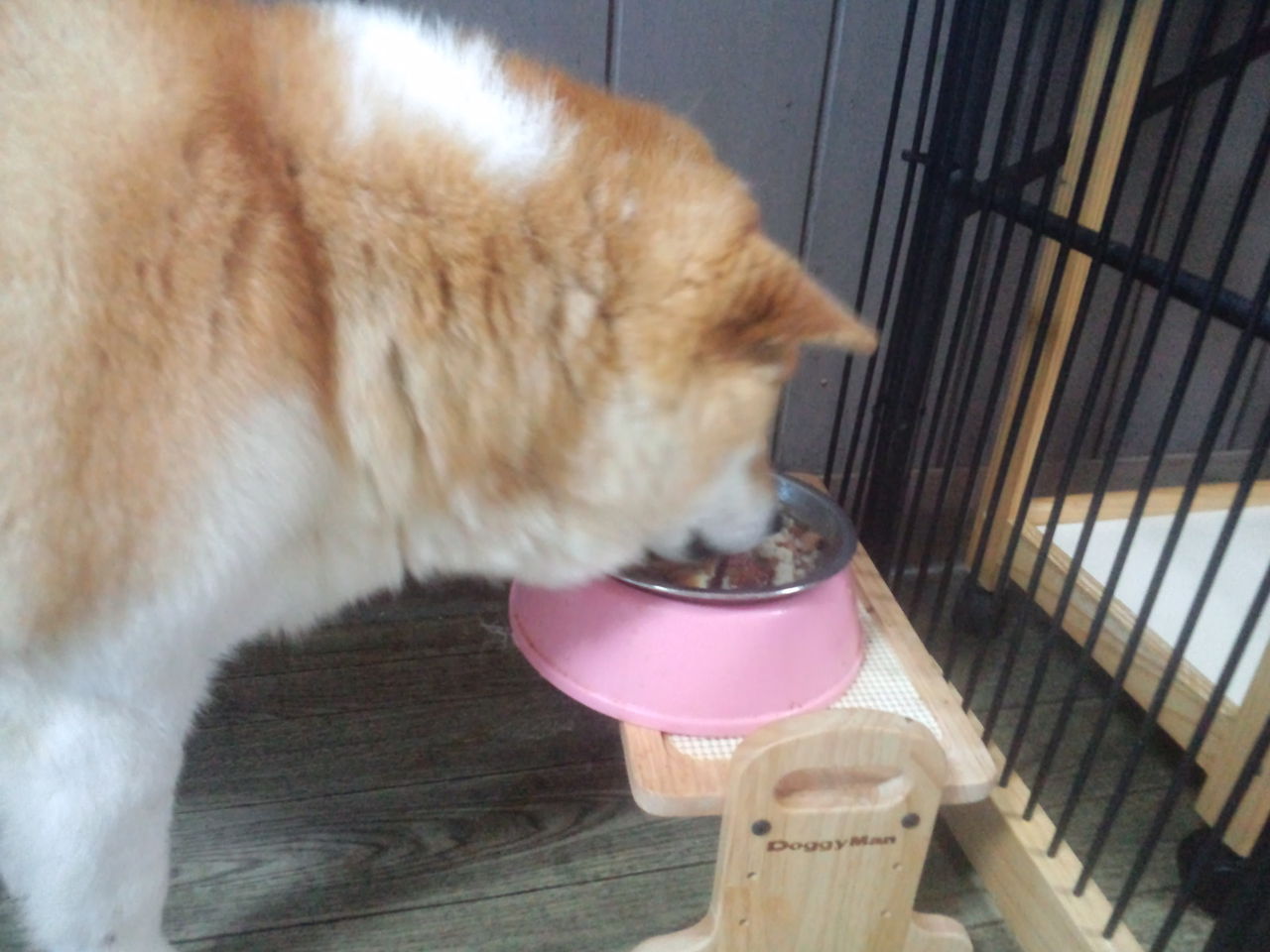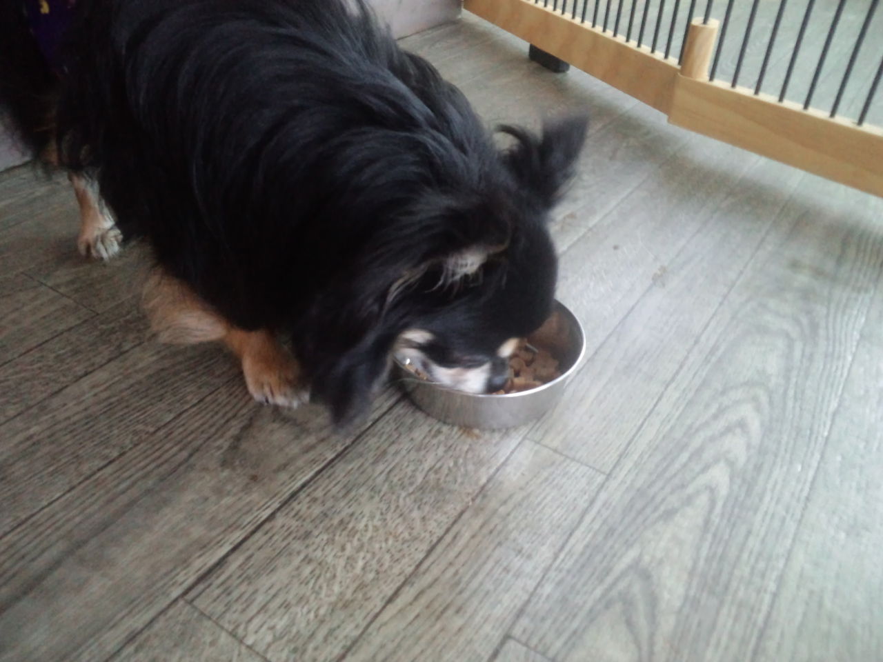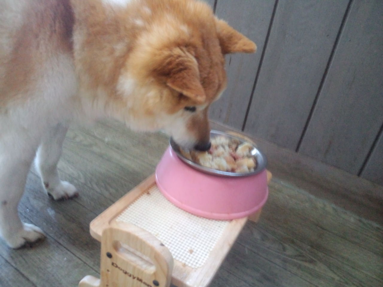生涯お預かり柴犬タローくんゆっくり食べています。