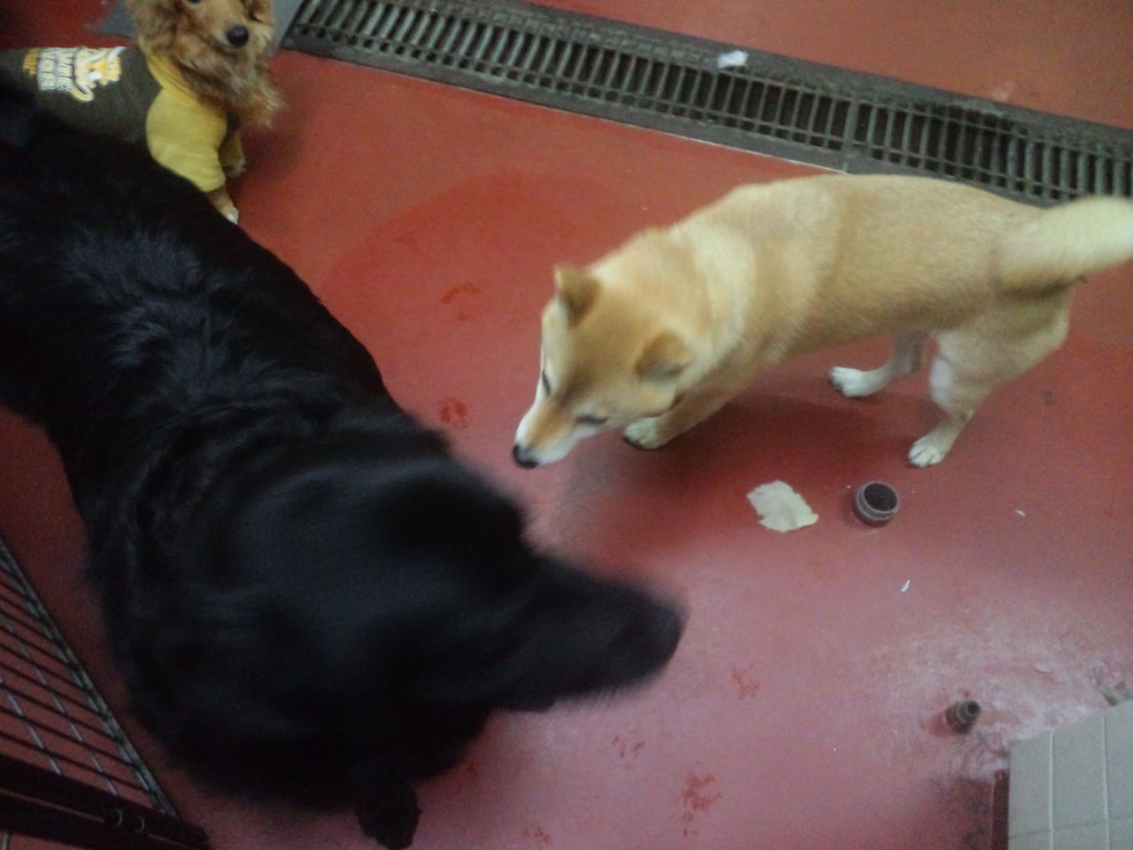 今日は大型犬エリアがご希望みたいで、大治郎にご挨拶してます。