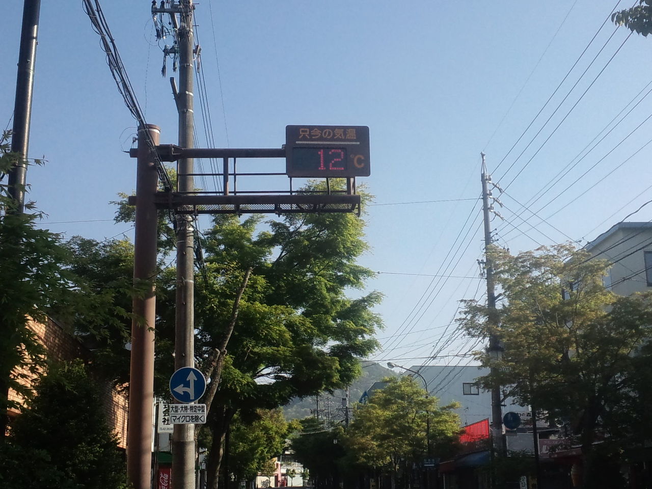 今朝の軽井沢の気温は12℃、天気は快晴です。