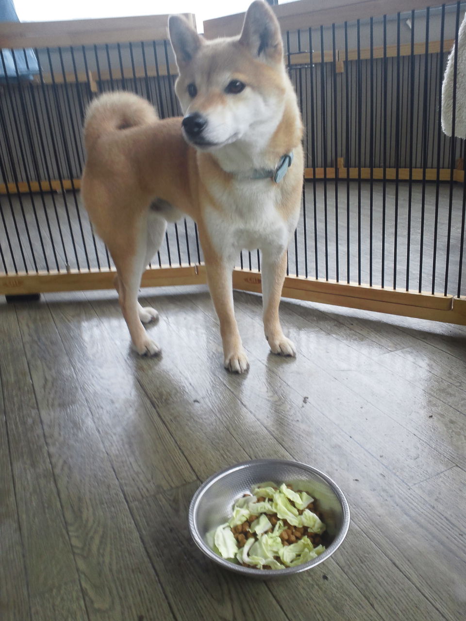 生涯預かり柴タロウ君、少しずつ食べてます。