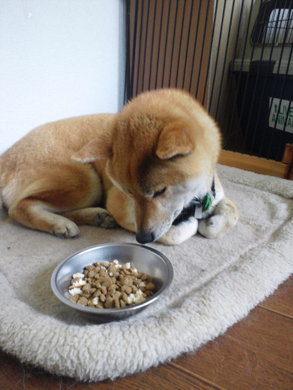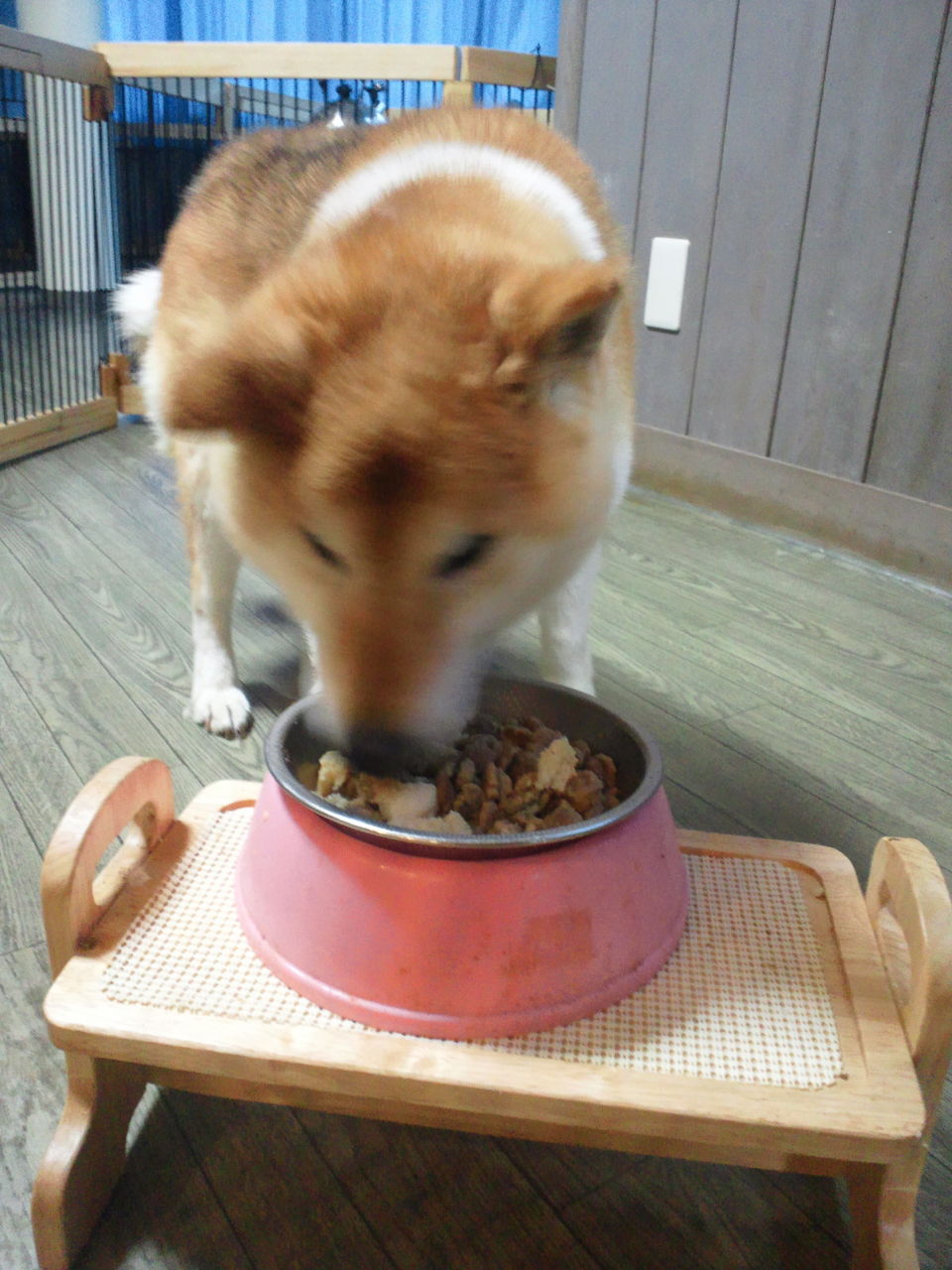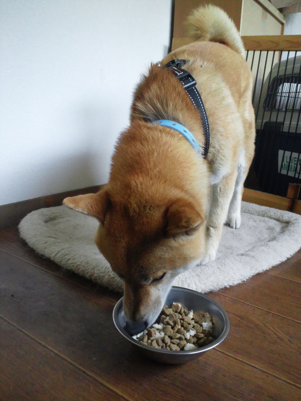 生涯お預かり柴犬タローくんゆっくり食べています。