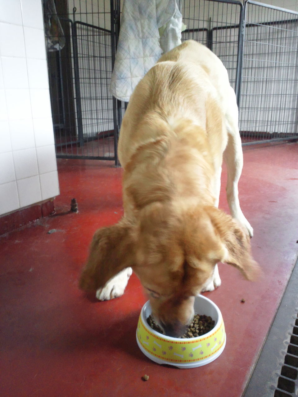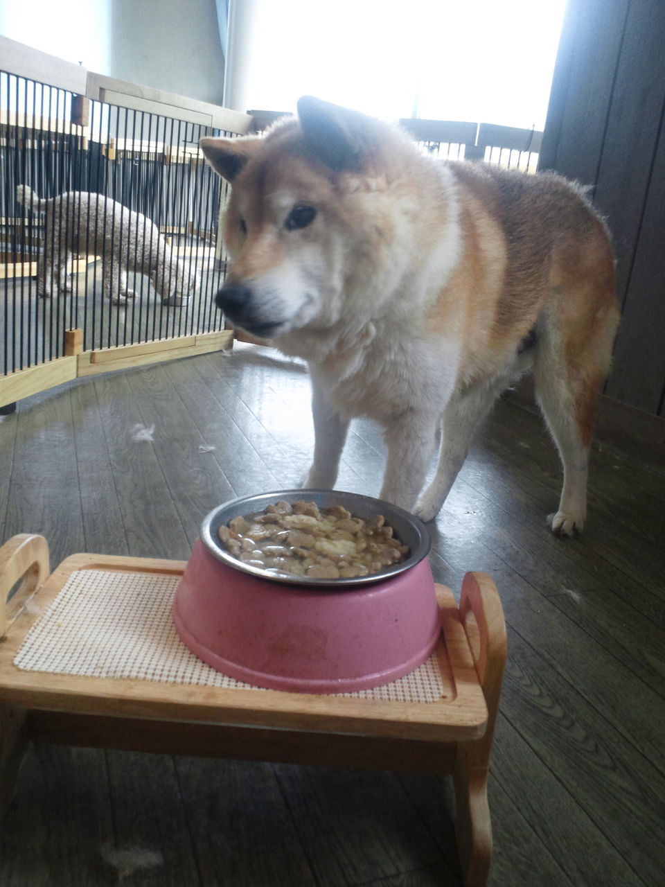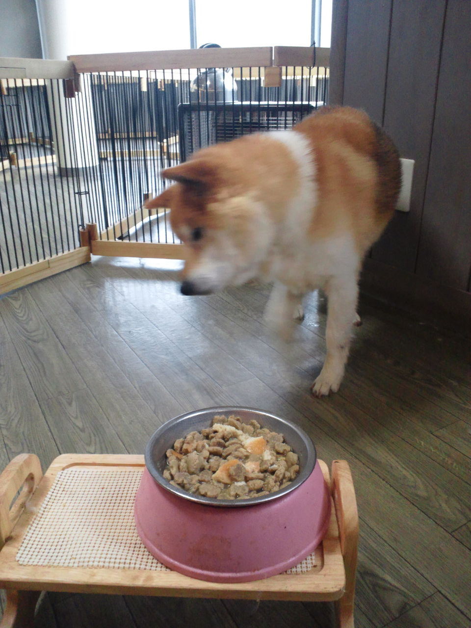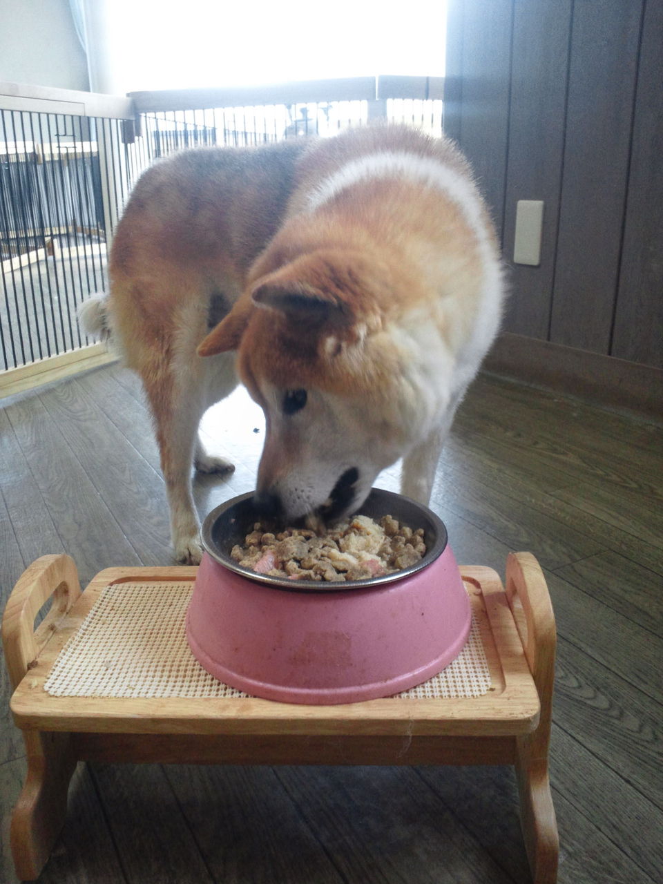 生涯お預かり柴犬タローくんゆっくり食べています。