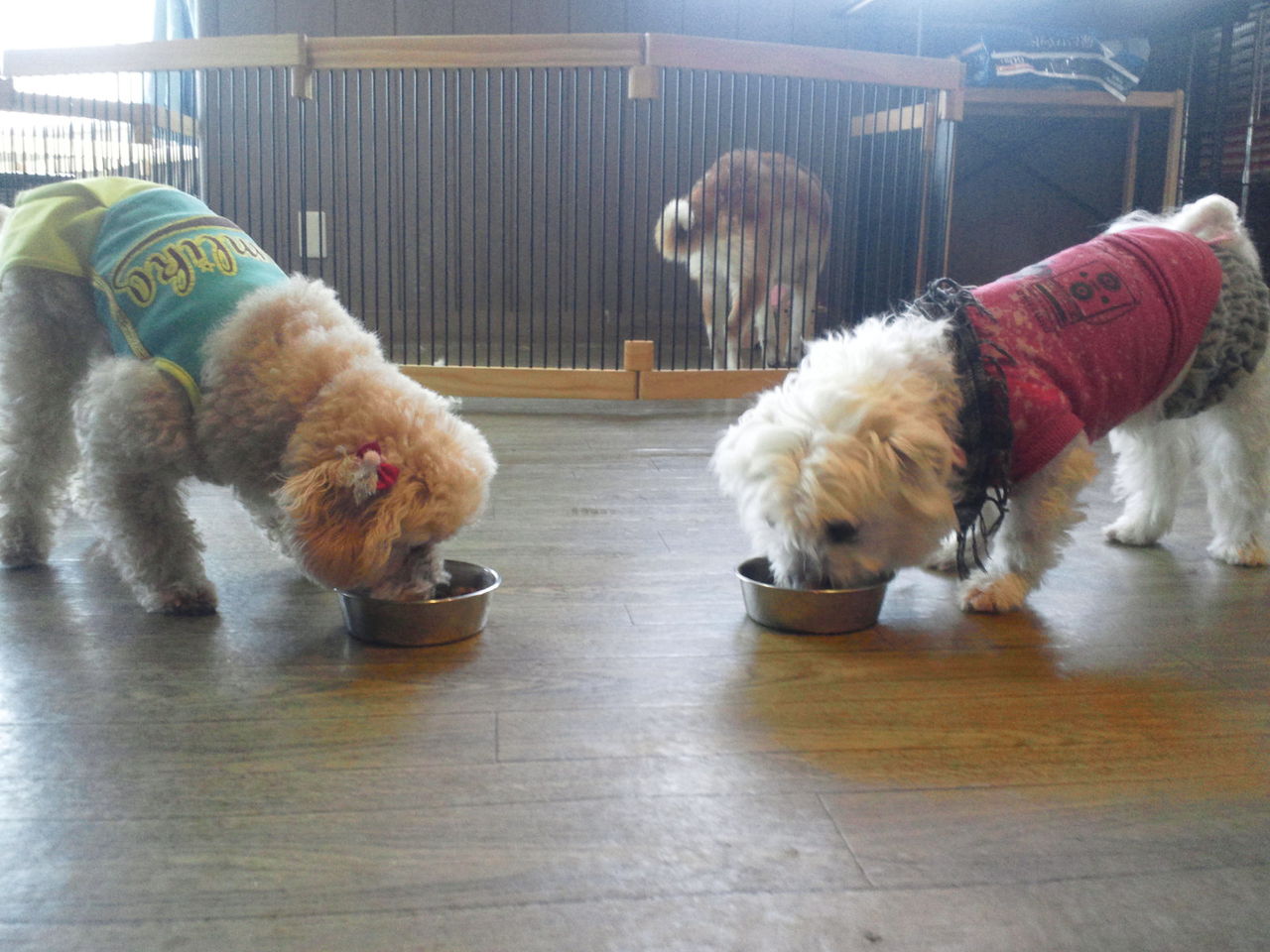 生涯お預かりトイプーベラちゃん、マルチーズキューくんしっかり完食しました。