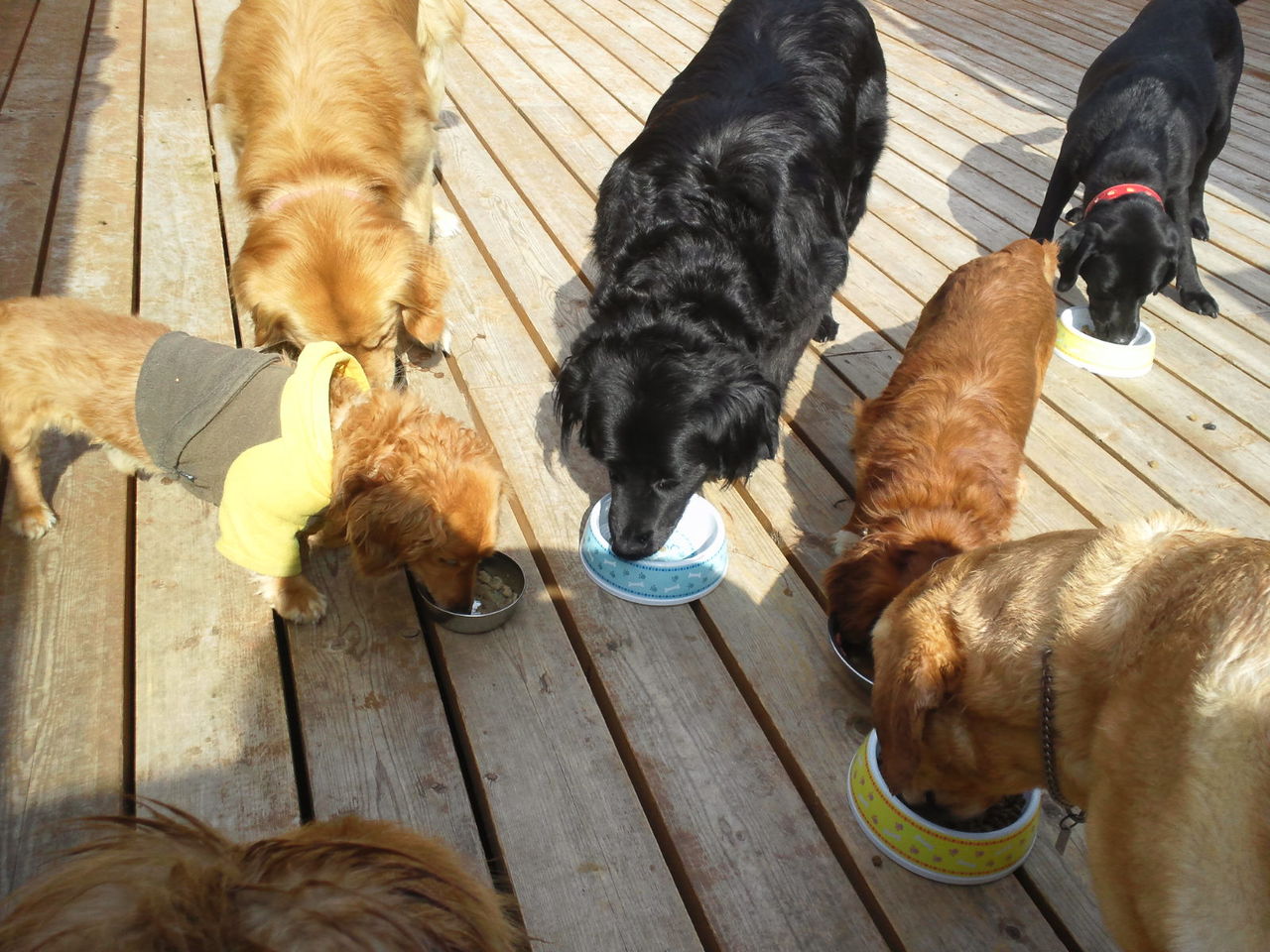 ウチの大治郎を併せて、5匹ものレトリバー犬種+キャバリアとダックス2匹。 夜も昼も無くプロレス状態で、おかげで店長は寝不足気味です。みんな楽しそうだったのでよしとするか…。店長もプロレスの輪に入って楽しめたし…。