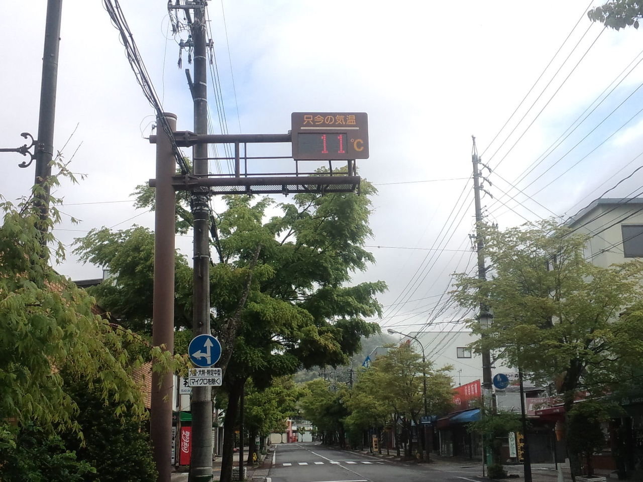 今朝の軽井沢の気温は11℃。天気は雨も上がって晴れ間が見えて来ました。