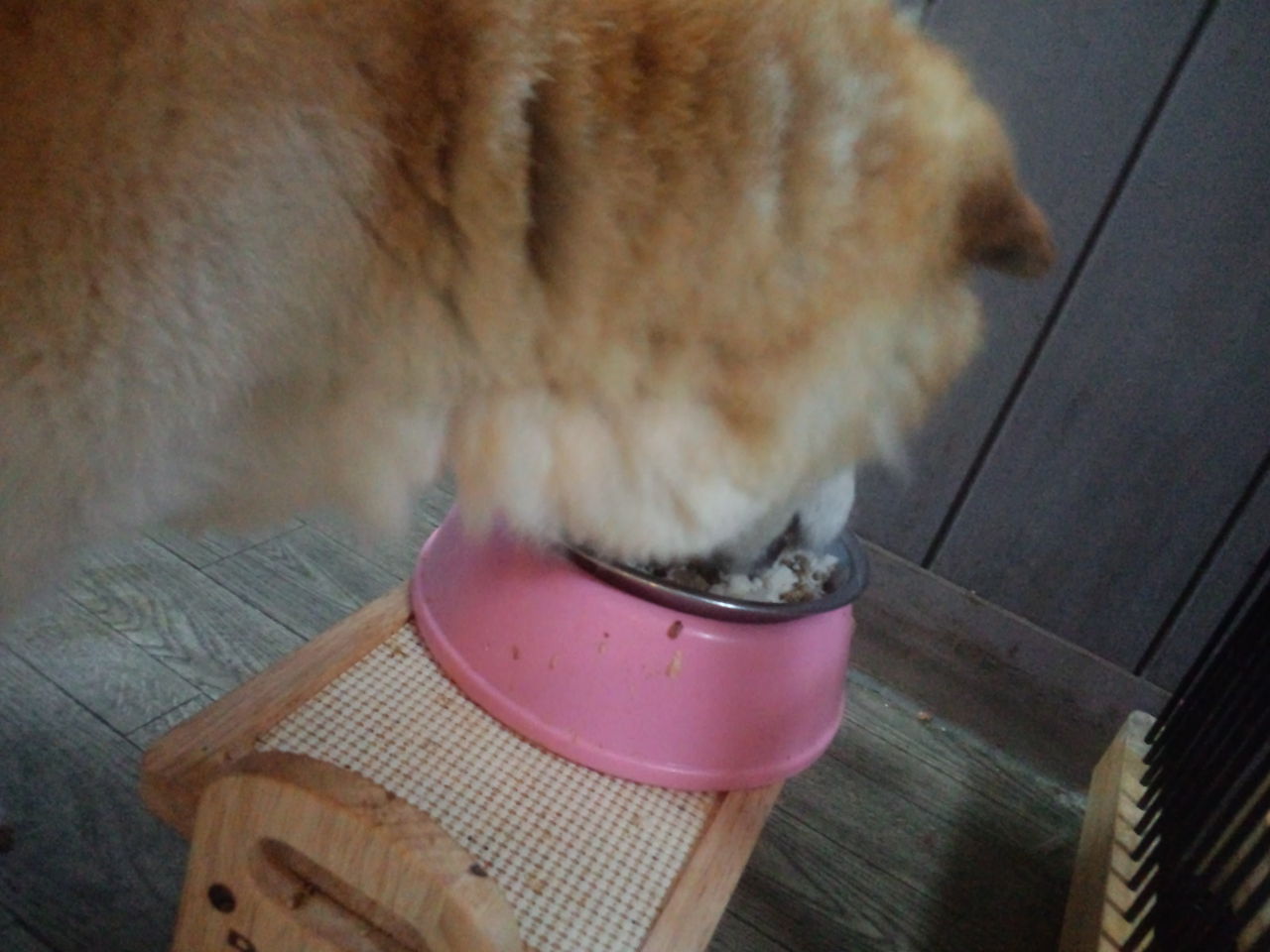 生涯お預かり柴犬タローくんゆっくり食べています。