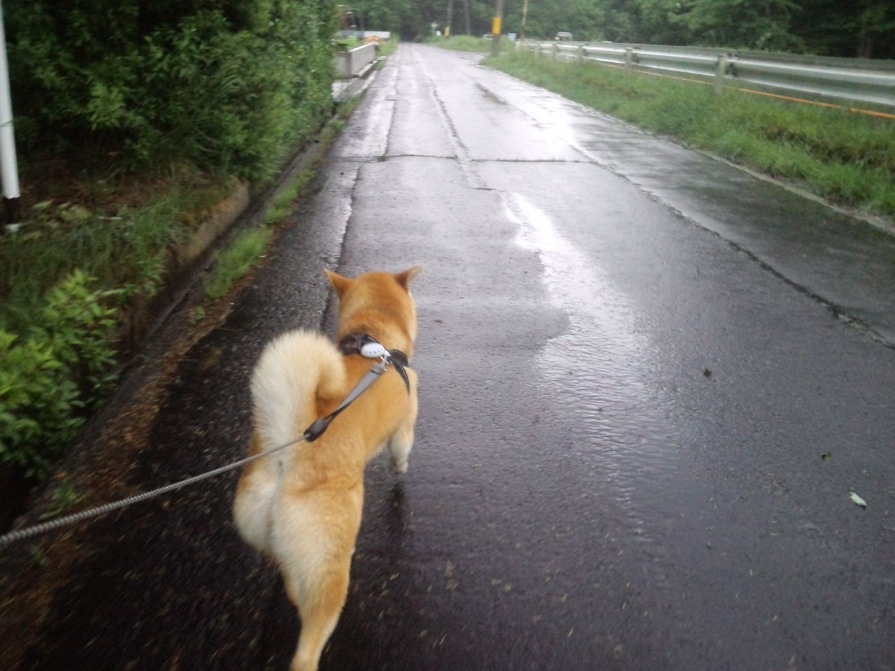 上がっていた雨がまた強く降り出しました。雨でも元気なハチ君です。