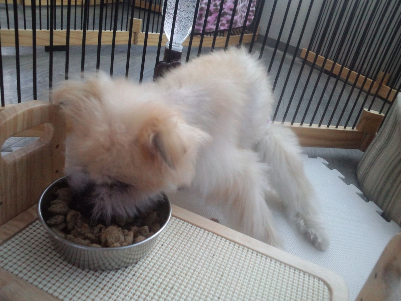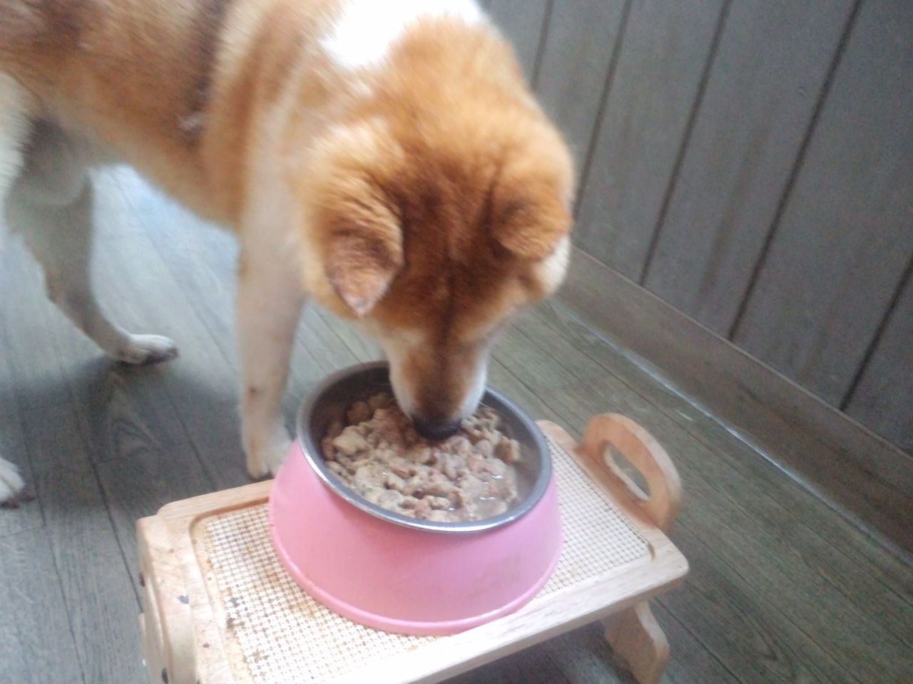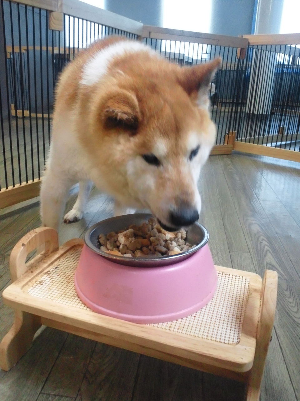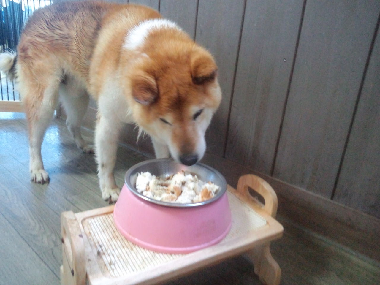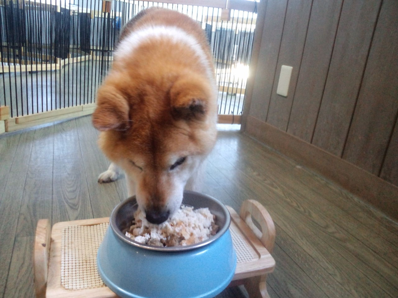 生涯お預かり柴犬タローくんゆっくり食べています。