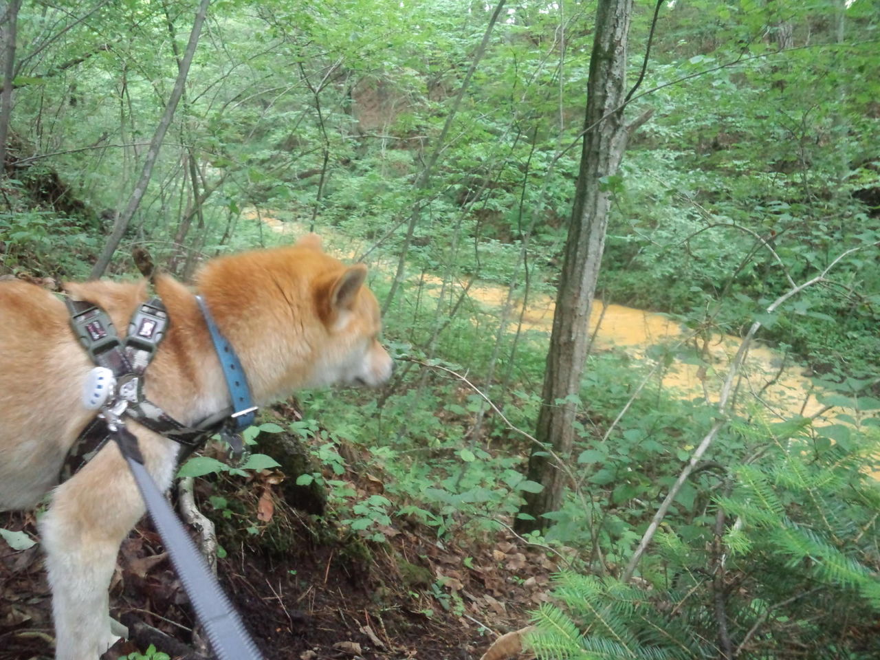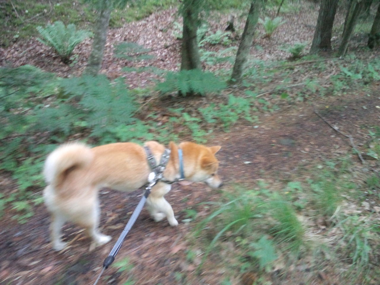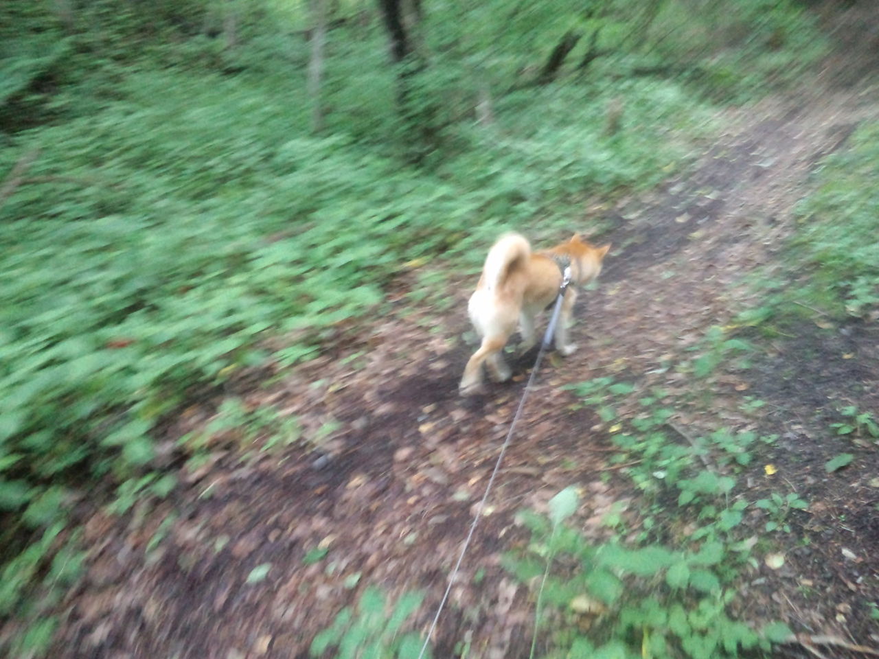 今朝は既に暑いです~。早めに切り上げなきゃハチはバテるかな? と思いきや、大治郎と一緒にお散歩で喜んで歩いてます。