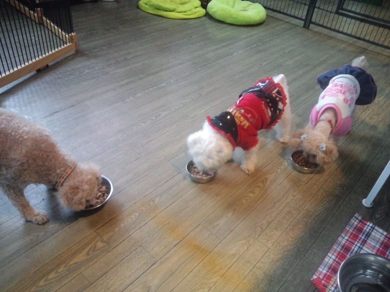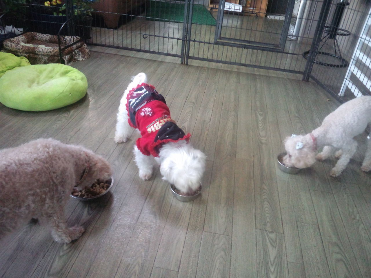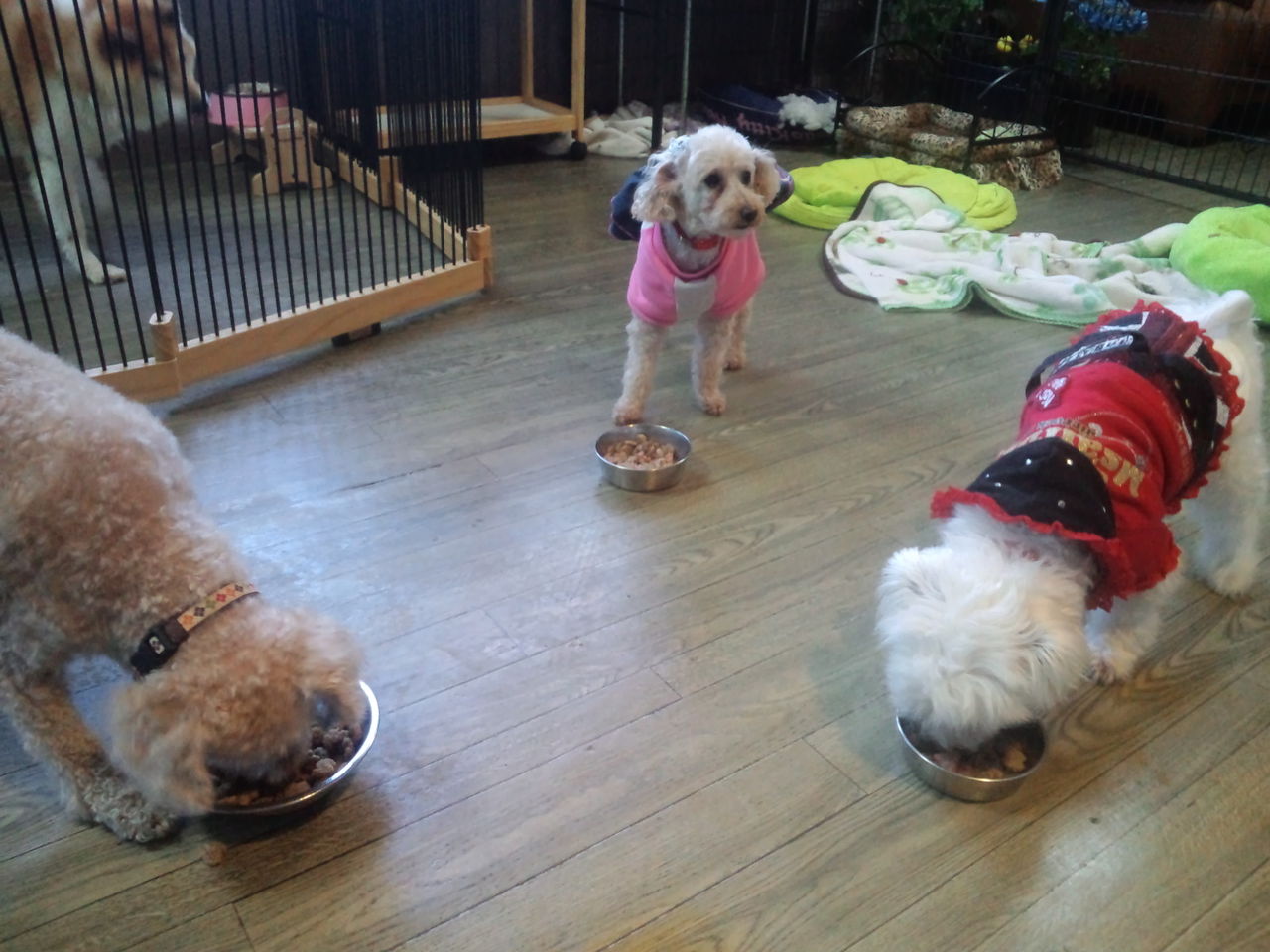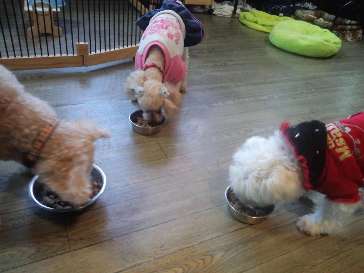 生涯預かりマルチーズキュー君、トイプーテディ君とベラちゃん、しっかり完食しました。